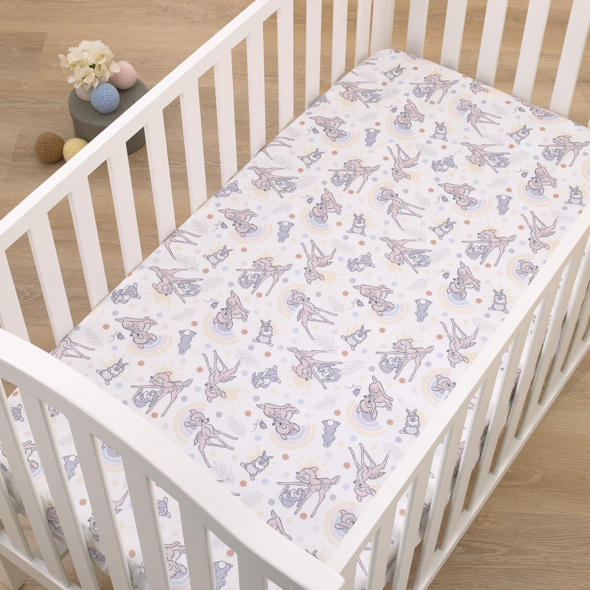 The Disney Bambi Fitted Crib Sheet features a playful pattern with Bambi and Thumper!
