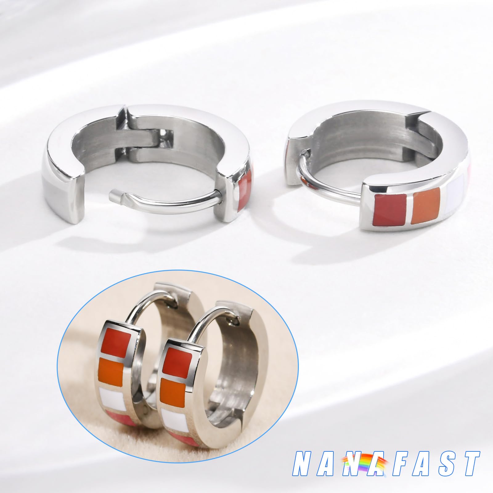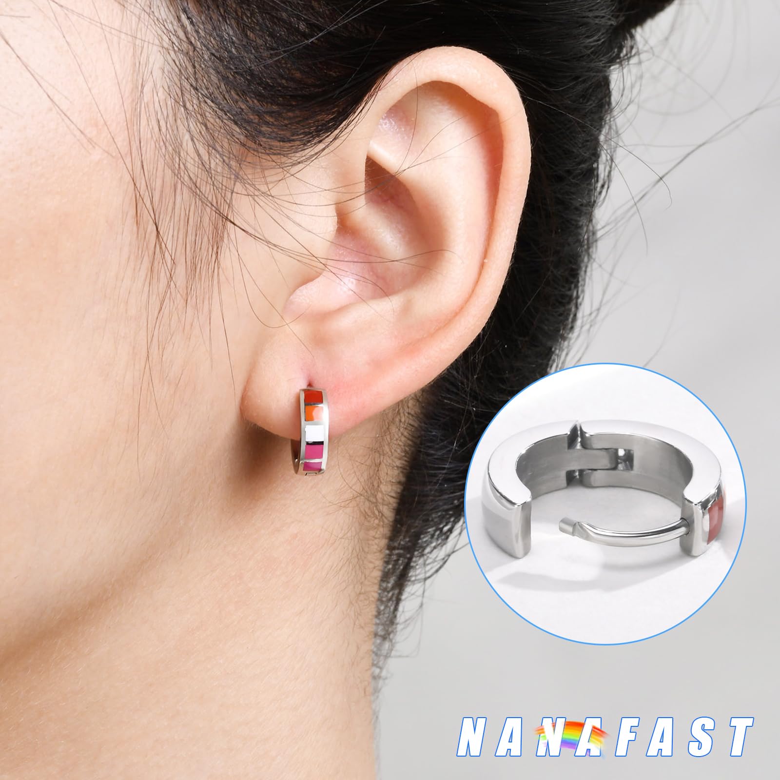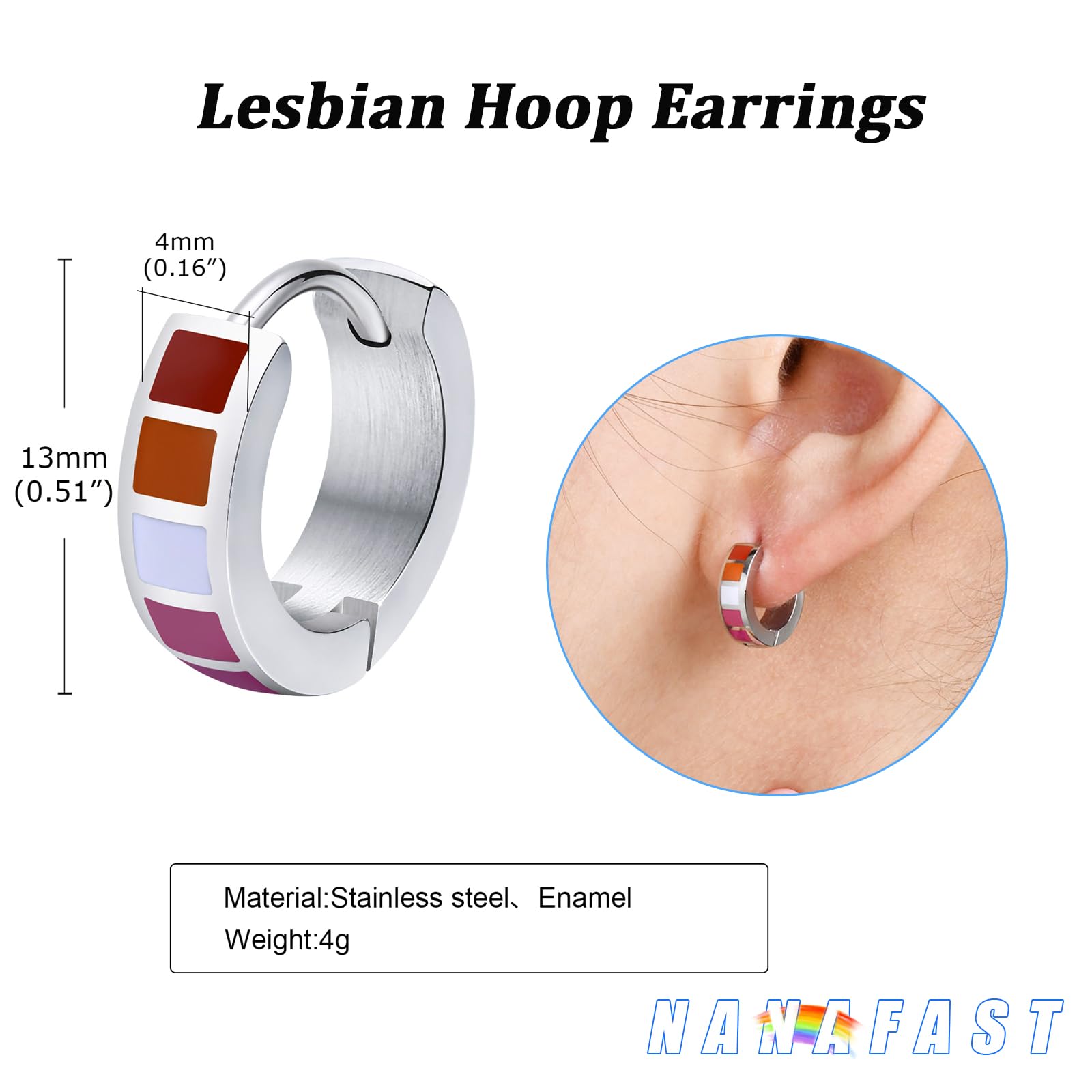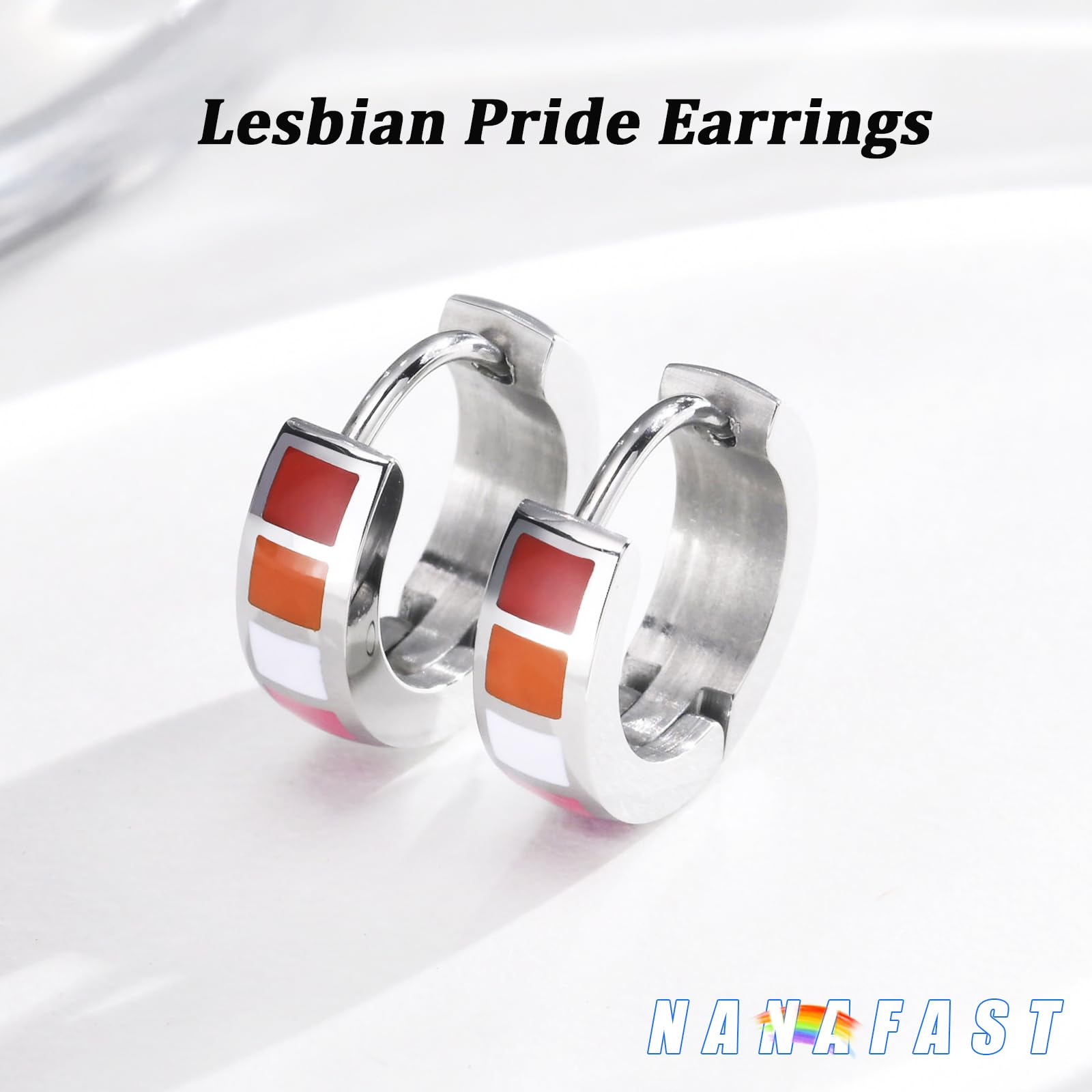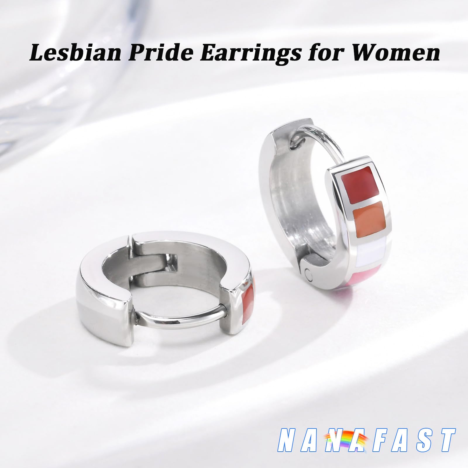 Lesbian Pride Earrings: Show off your pride with lesbian earrings in iconic lgbtq colors. Whether you're out and proud or still discovering your identity, these LGBT hoop earrings can help express your pride. These LGBT pride earrings make a statement that love is love, perfect for pride month, LGBT community, parades or any pride events.