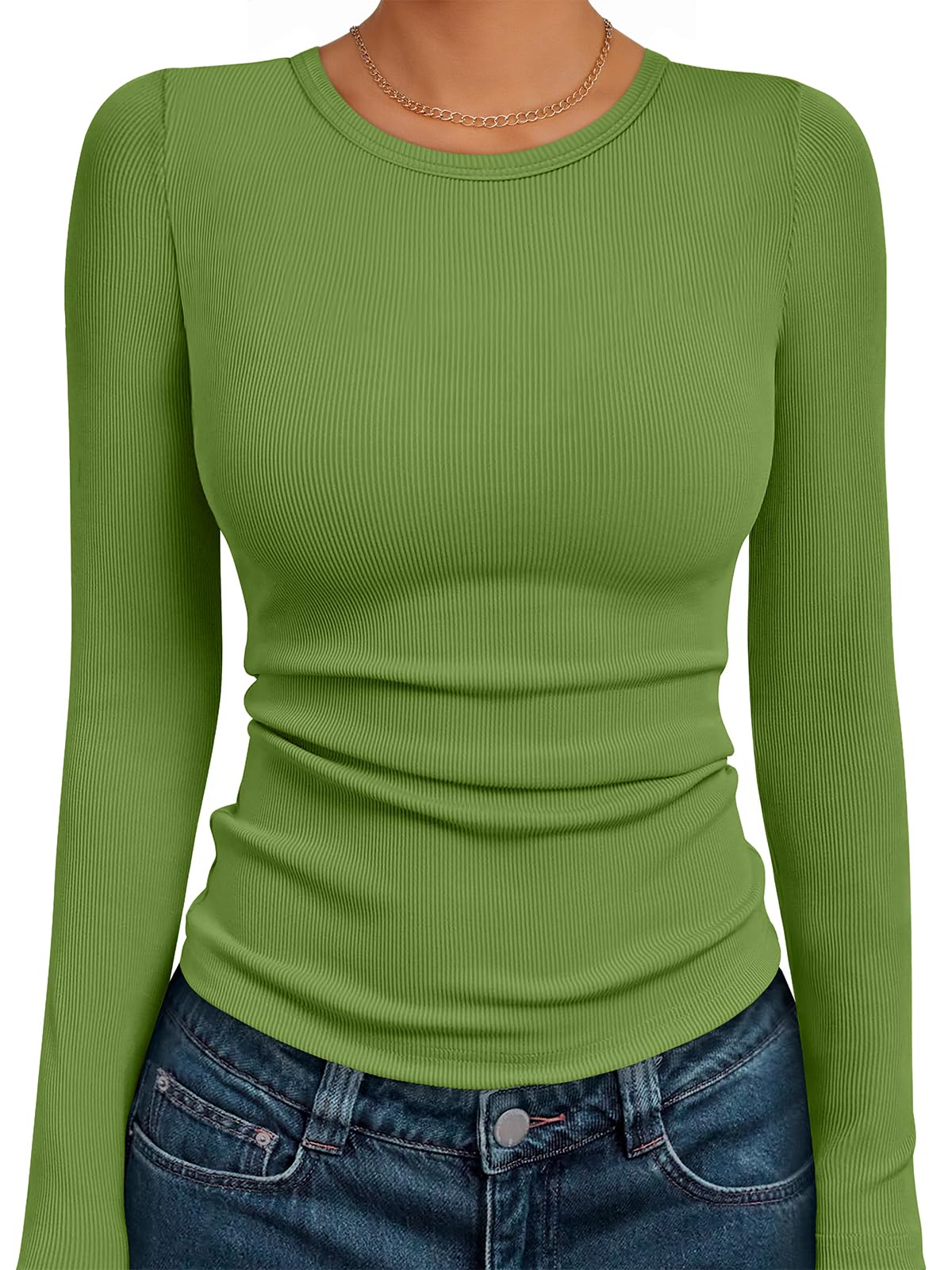 Long sleeve ribbed crewneck shirts for women, business casual dressy tops in fall & winter, suit for office,outdoor,home