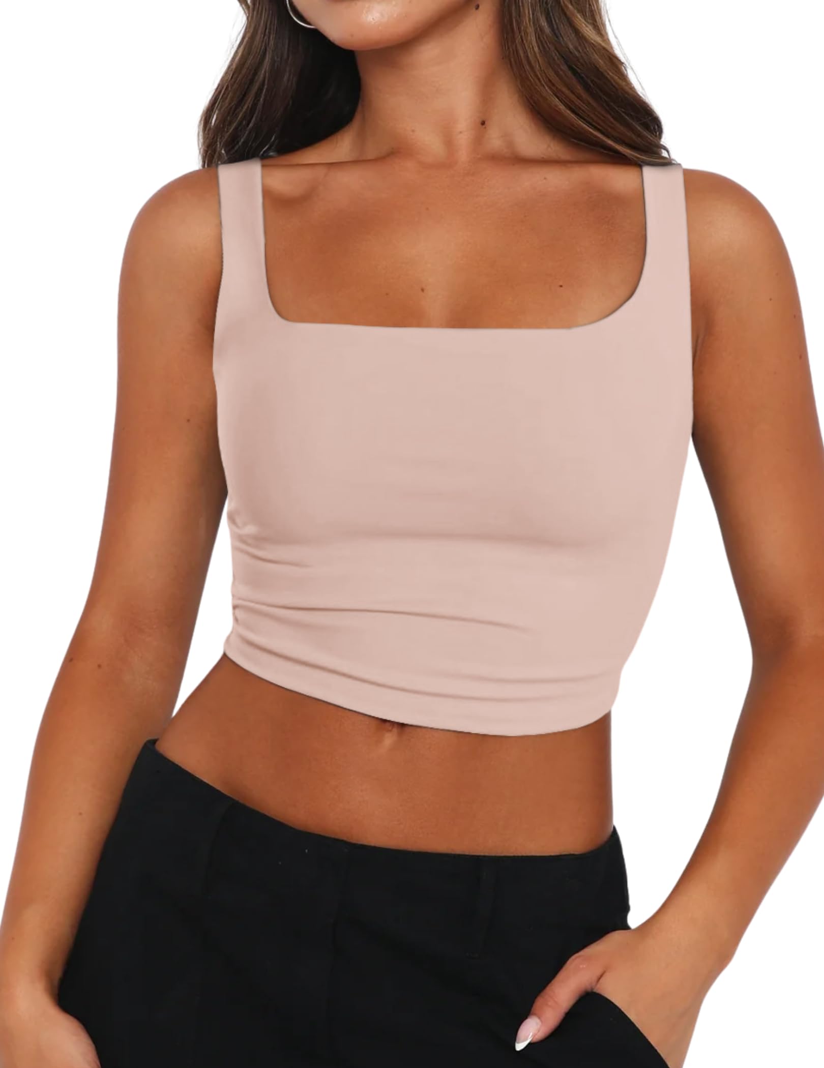Trendy Design: This cute summer tank top featuring a cropped length with trendy style, square neck, double layer, solid color, sleeveless, slim fit, a versatile and stylish piece that can be dressed up or down for any occasion.