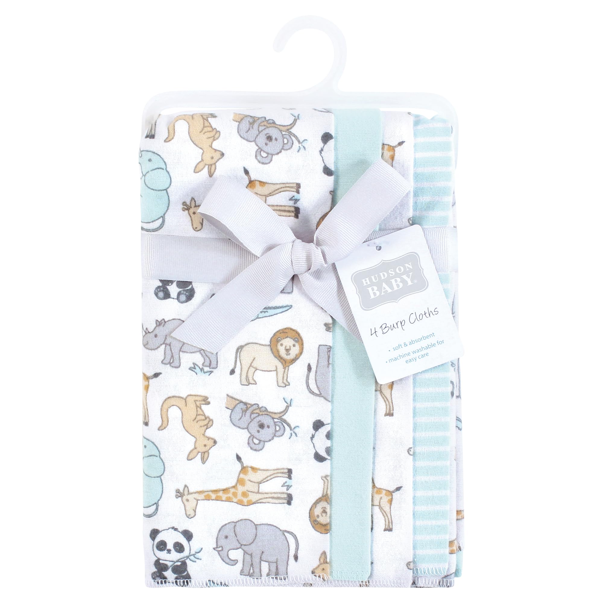 Hudson Baby flannel burp cloths feature multiple layers of fabric to help clean up the messes and spills that you are bound to encounter with your new baby. Our burp cloths are soft and gentle when used on baby's skin and help protect parent's clothes from drool and spills while feeding, burping, and snuggling baby. Our burp cloths will come in handy everyday, whether you are hanging out at home, traveling, or leaving your little one at daycare.