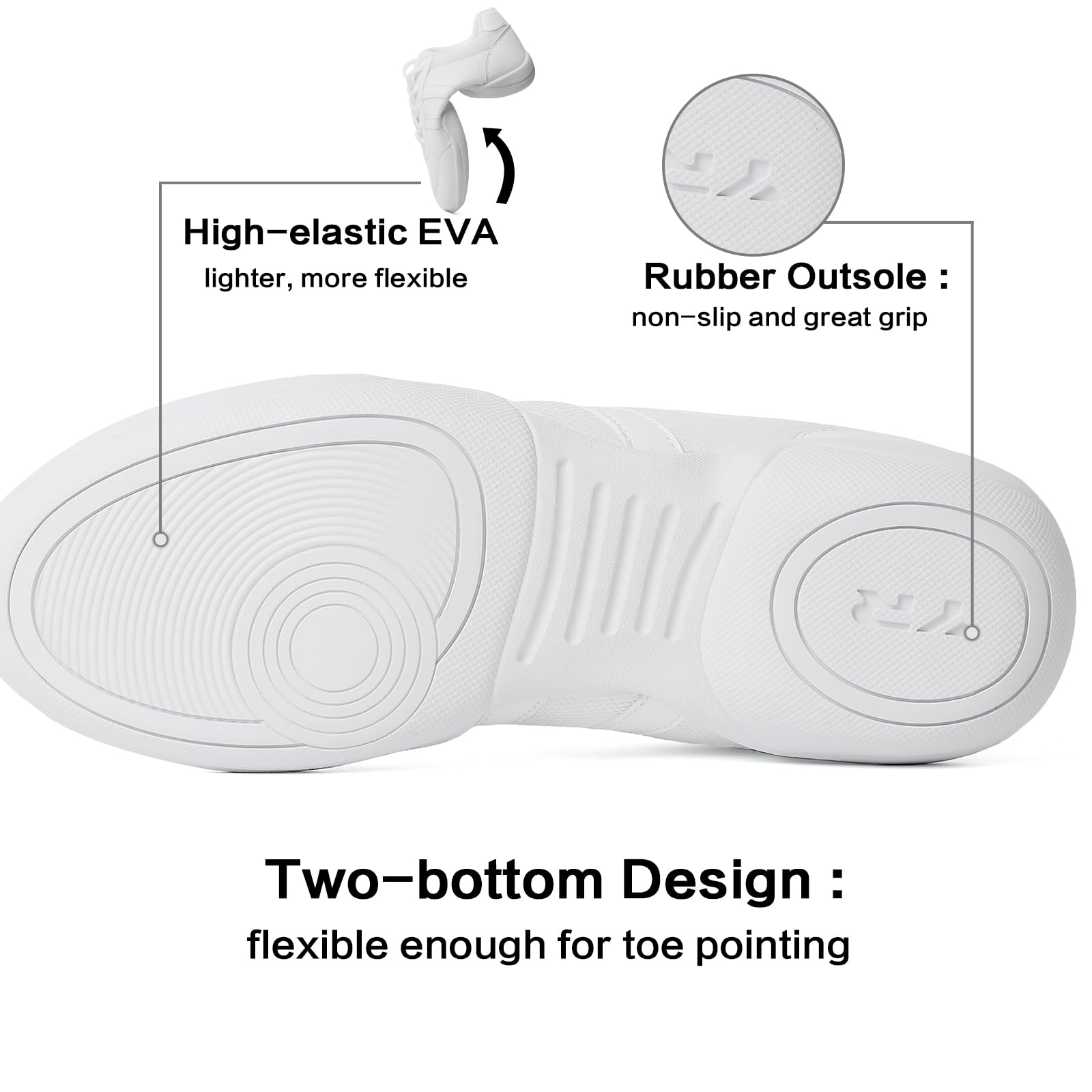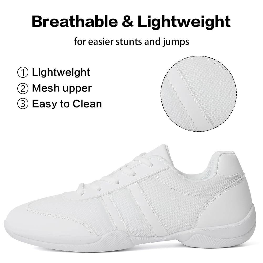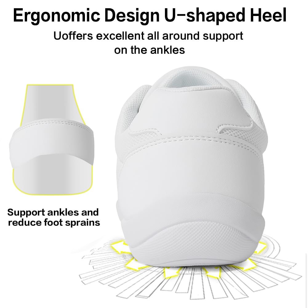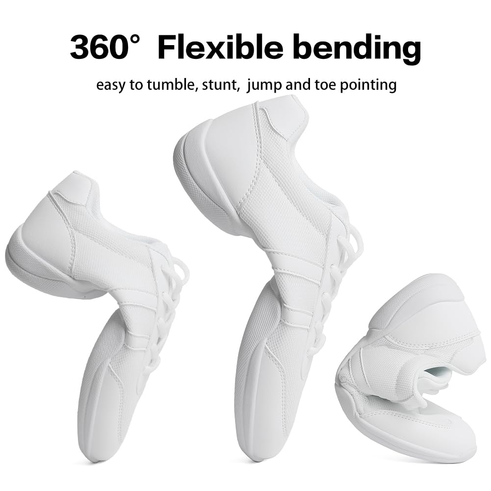 Breathable Cheer Shoes: Enhanced airflow mesh upper keeps feet cool and dry during intense cheerleading training, while the ergonomic design ensures unrestricted movement and long-lasting comfort.