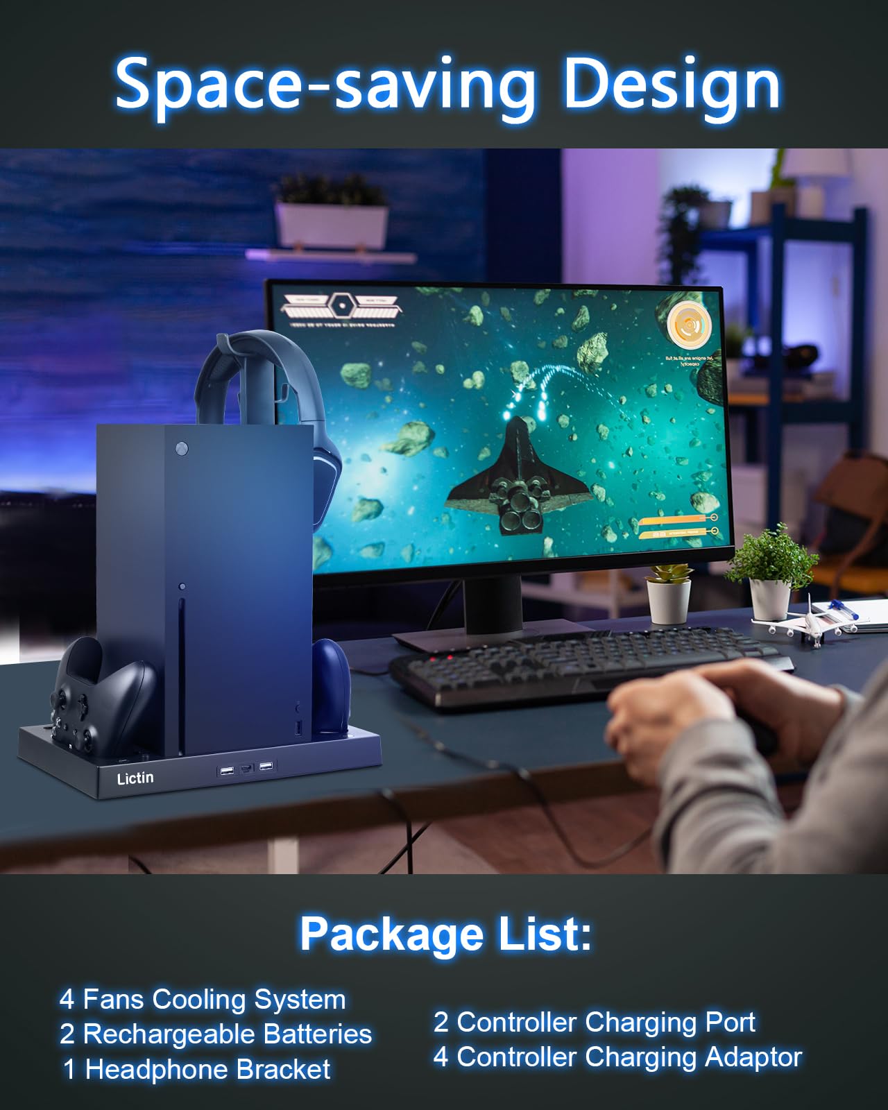 Convenient Headset Hanger: Our Xbox Series X cooling charging stand's ergonomic design not only keeps your gaming area organized but also includes a headset hanger. Hang your gaming headset when not in use, saving space and ensuring quick access for your next intense gaming session