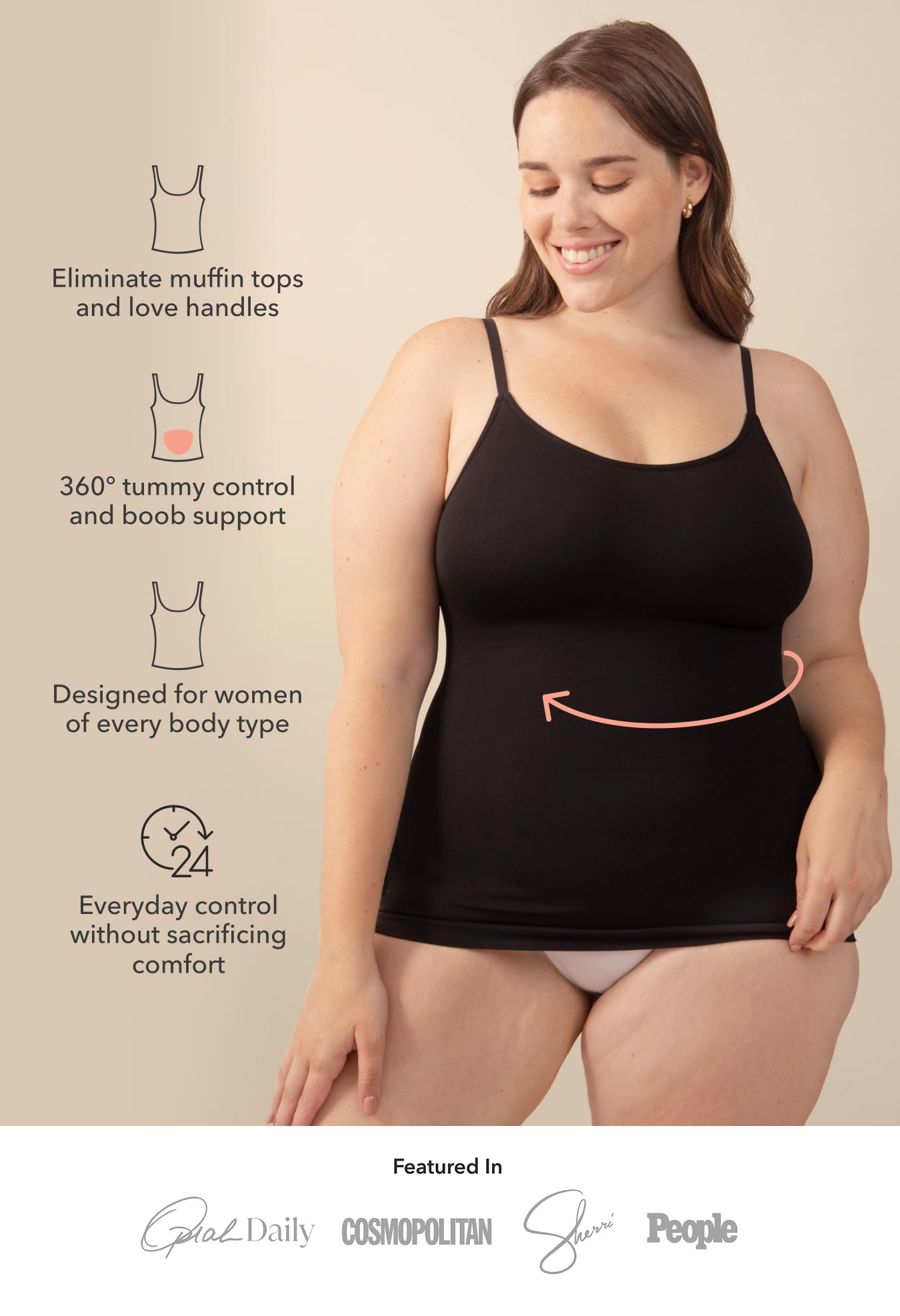PERFECT FIT FOR EVERY BODY TYPE With adjustable straps, these camisole tops for women fit small to plus sizes. This womens tops collection ensures a flawless fit whether you are using them as camisoles for women for under clothes, tummy control shapewear, or as a must-have basic tank top.