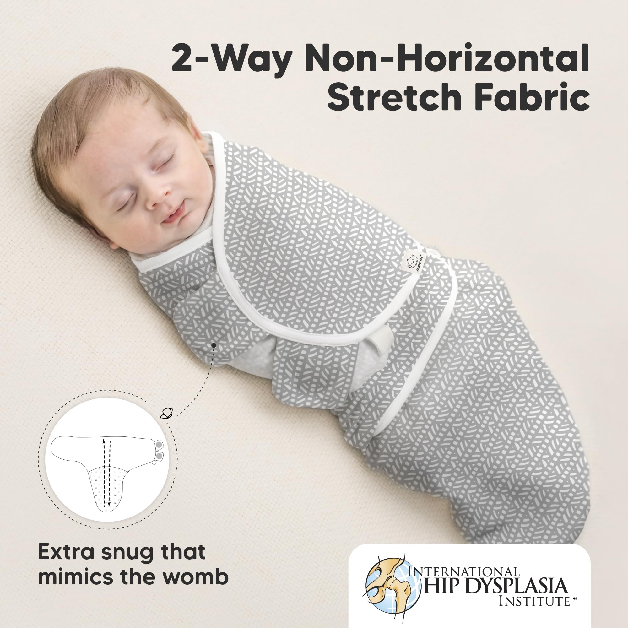 Ergonomic for Newborn Growth - Certified as a hip-healthy product by the International Hip Dysplasia Institute (IHDI), the KeaBabies Soothe Baby Swaddle Sack provides ergonomic hip support for an infant's first 6 months of growth.