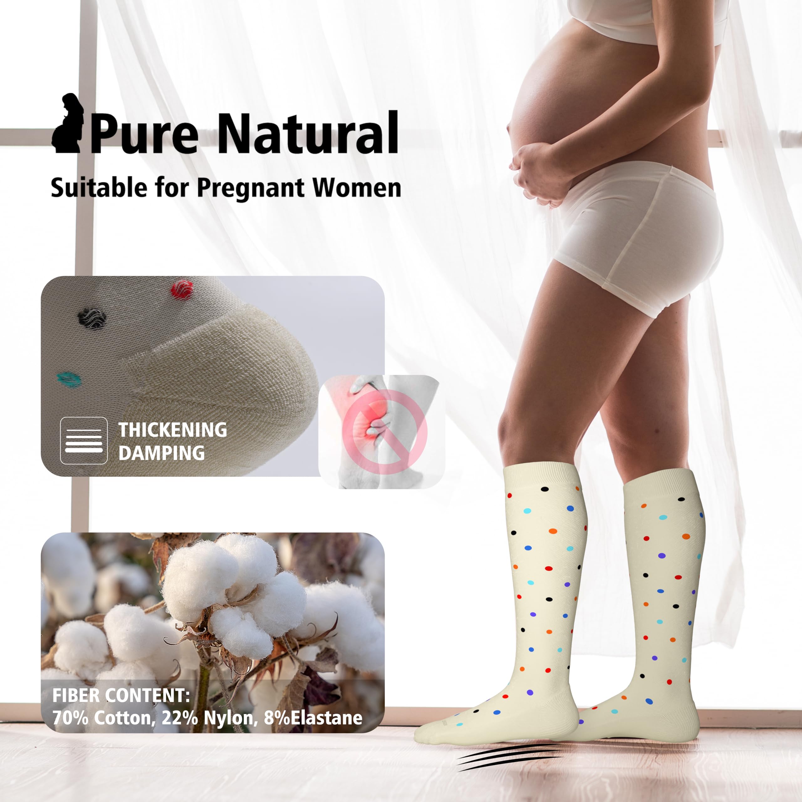 Multifunctional Compression Socks: Compression socks for pregnancy&nurses effectively address leg-related issues, prevent blood clots and alleviate fatigue, ease swelling and pain during pregnancy, and provide support to eliminate fatigue and boost leg vitality. They are suitable for nurses, pregnant women, those with long shifts, travel and flight.