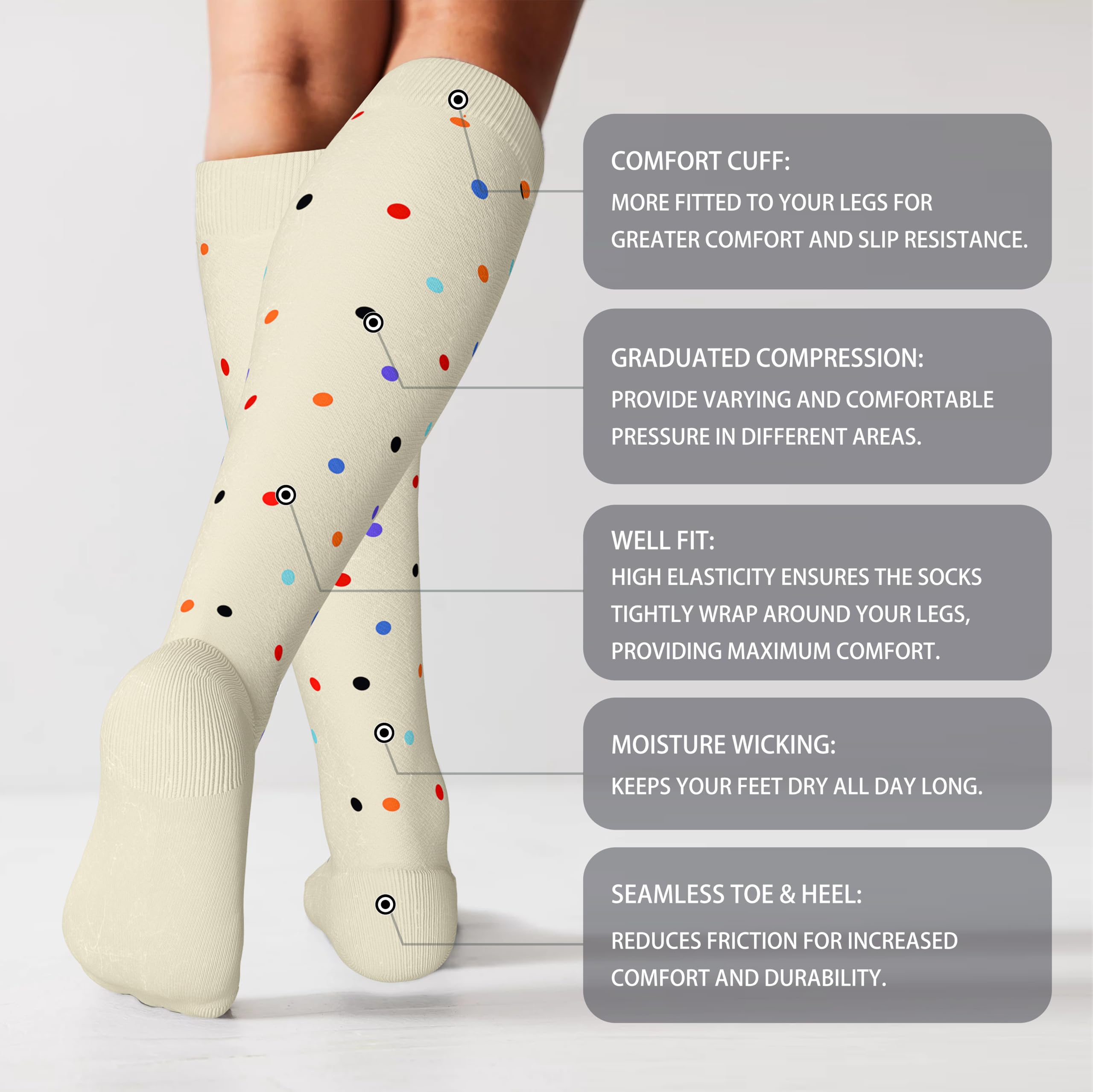 Best Compression Socks: Ladies cotton compression socks women are skin-friendly and comfortable, easy to put on and take off. Packaged in pairs, cute fun compression socks very practical and ideal for gifting to your lover, family, friends, pregnant women, nurses, etc. They provide the perfect solution for people who sit for long periods during travel or work.