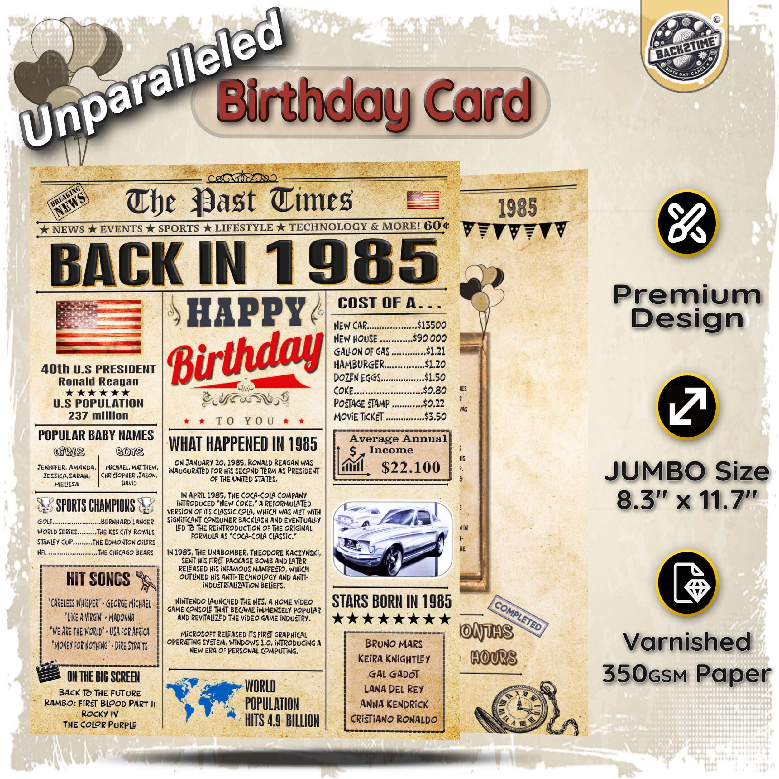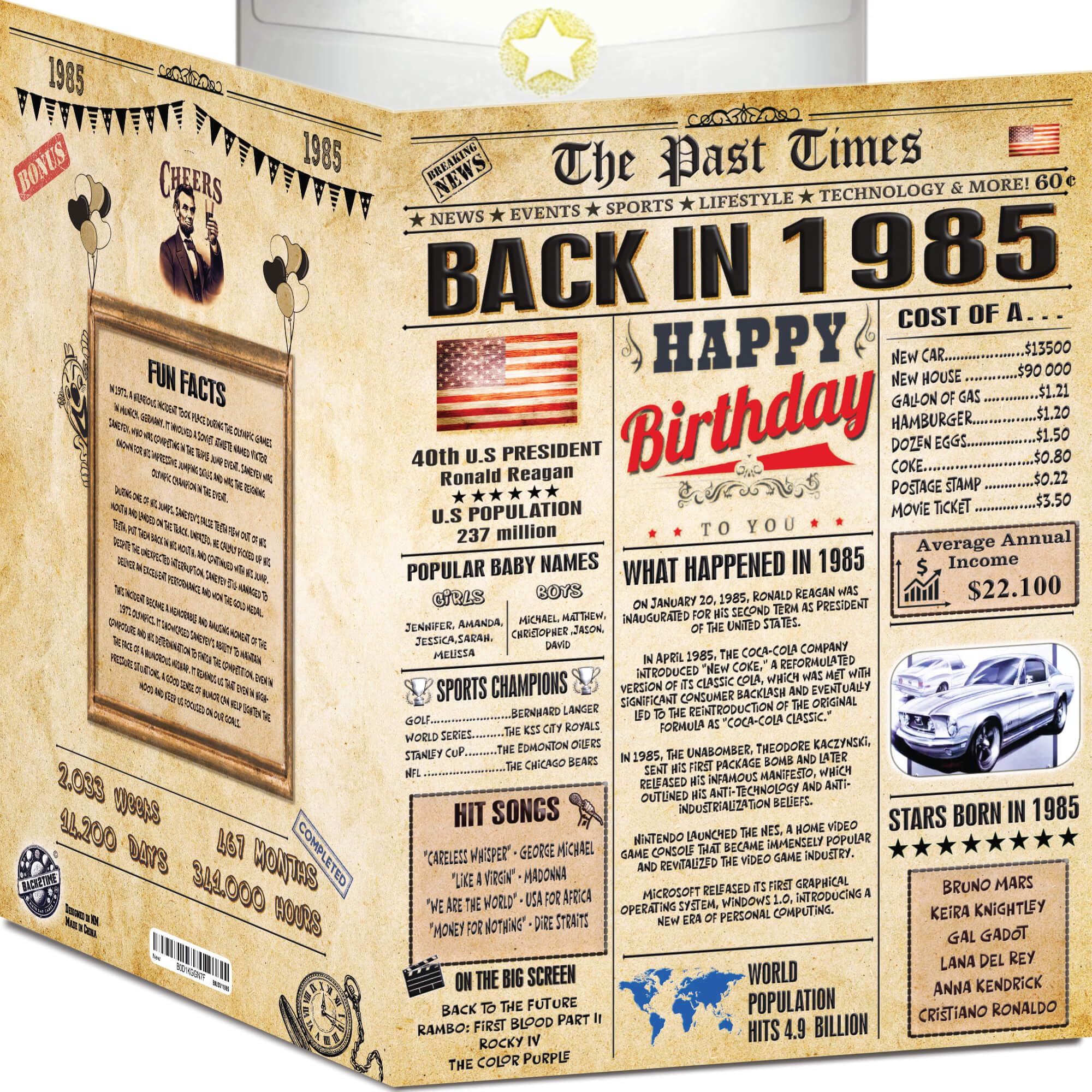 ๐ FUNNY BIRTHDAY CARD + EXCLUSIVE ENVELOPE ๐ Enjoy a beautifully printed Back in card that's entertaining to read, featuring a special bonus on the back with intriguing stories or lesser-known facts from that year. The interior offers space for personalized messages, designed with an aged appearance and elegant decorations to enhance the vintage feel. The included envelope boasts a unique design ideal for mom and adult born in 1985. Birthday Cards for Women, Birthday Cards for Men.