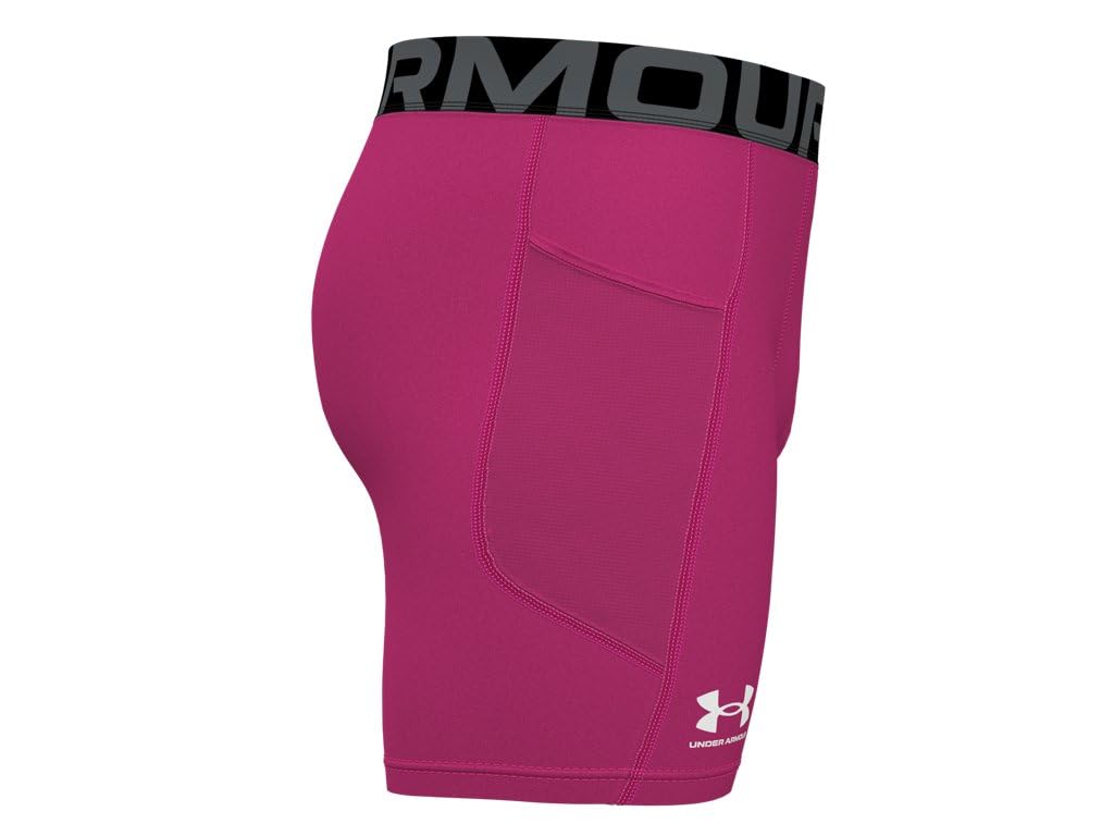 Description HeatGear® Armour is our original performance baselayer—the one you put on first and take off last. So we made it extra comfortable by wicking sweat and stretching so you can move. No athlete can go without it. Super-light HeatGear® fabric delivers superior coverage without weighing you down. Strategic mesh panels for added ventilation where you need it. Material wicks sweat & dries really fast. Ergonomic design keeps seams off high abrasion areas & increases durability. Wide, exposed elastic waistband with wordmark detail. Updated gusset design provides ultimate support & comfort. Drop-in Strength Pocket™ on right side for easy storage. Inseam: 9"". No fly. Compression: Ultra-tight, second-skin fit. 84% Polyester/16% Elastane.