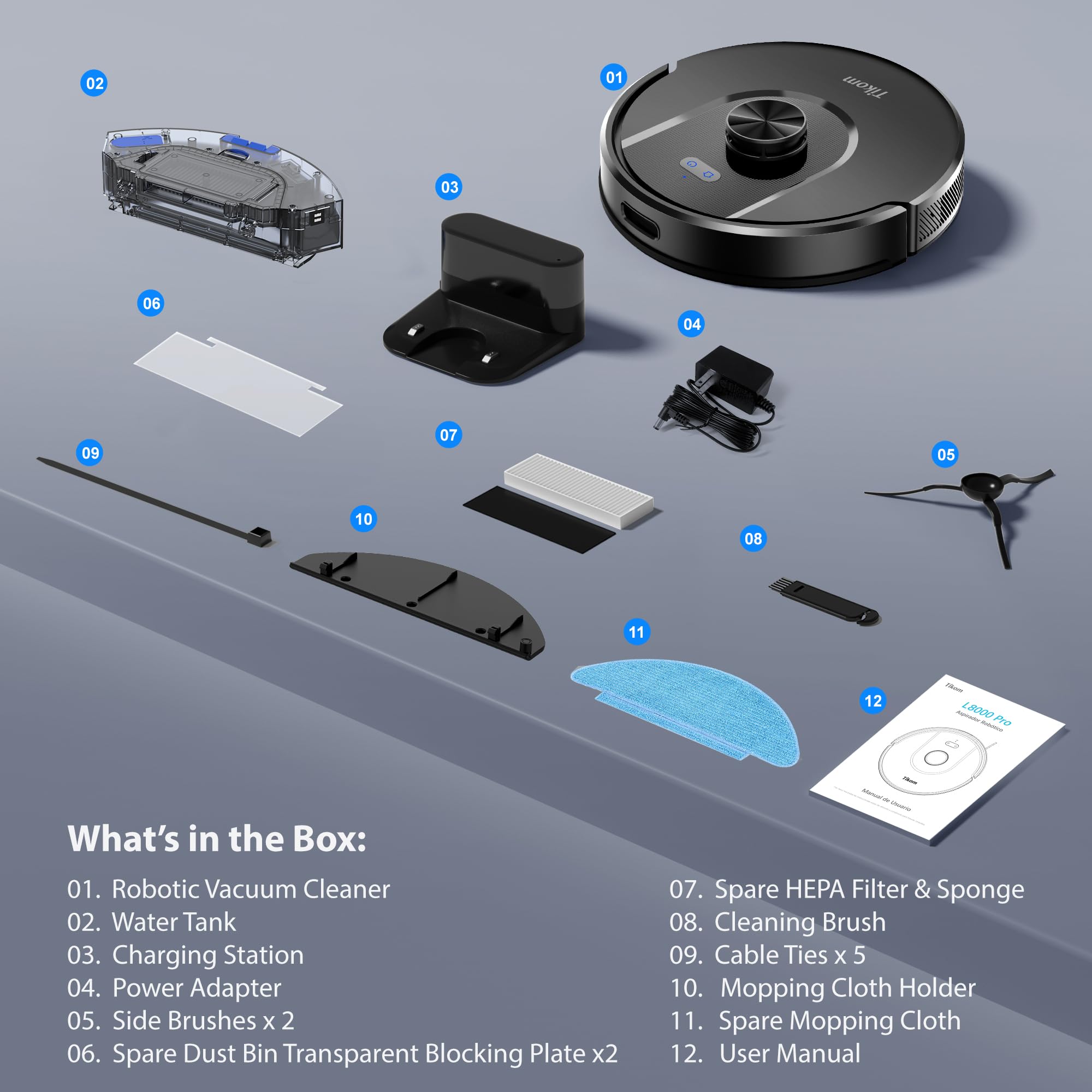2-in 1 Mopping and Vacuuming: The Tikom L8000 Pro robot cleaner supports multiple cleaning modes, Sweep Only/ Mop Only/Sweep & Mop. The water tank(300ml) and dustbin(450ml) capacity is 1.5 times larger than the previous generation.It effortlessly removes messes from your floors, ensuring a spotless home. Ideal for rugs, hardfloors