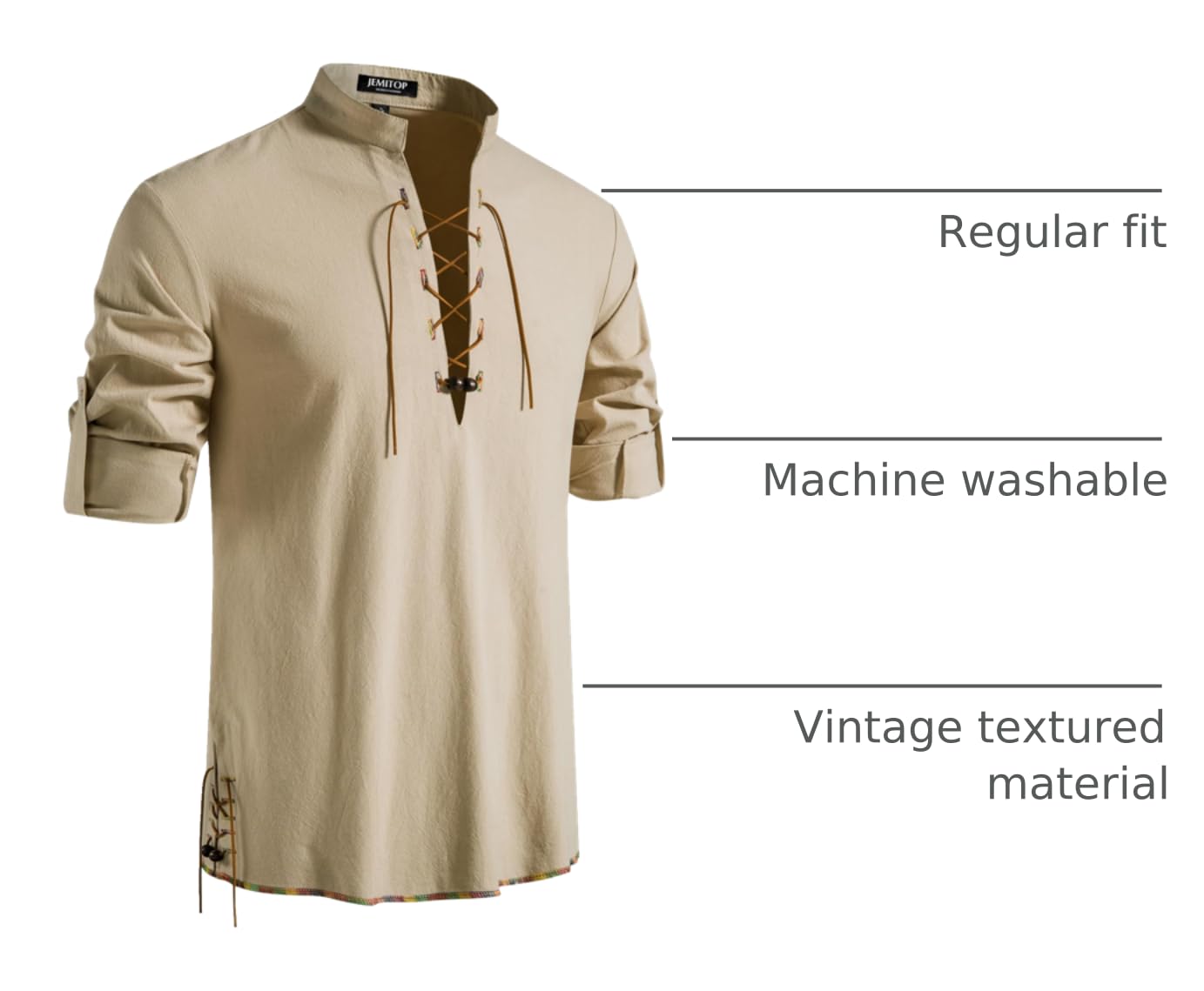 Design Concept: Cosplay costume for renaissance,pirate,viking,medieval,halloween / Retro drawstring shirt / Regular fit / Mandarin collar / Long sleeve / Rolled sleeve