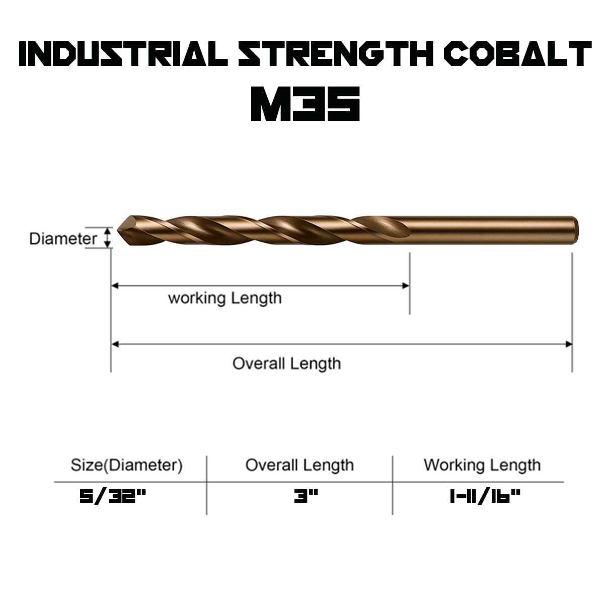 13 PACK OF 5/32" COBALT DRILL BITS - 5/32" Diameter with a Flute Length of 1-11/16" and Total length of 3"