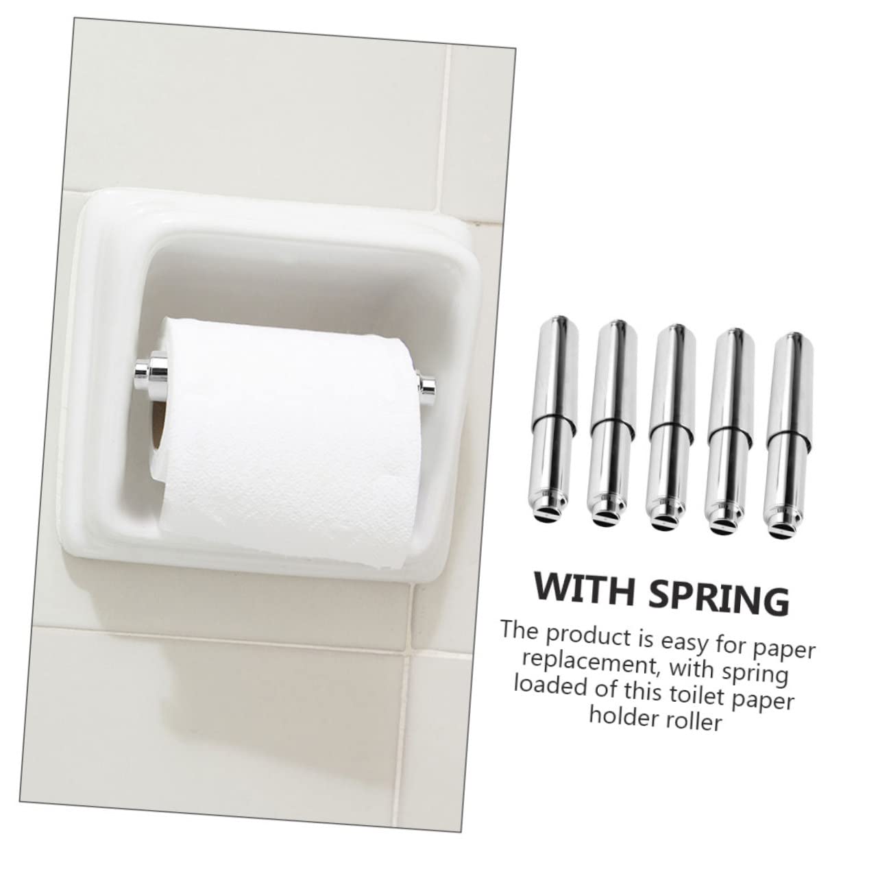 Toilet paper roller: toilet tissue holder rod silver 5pcs bathroom paper stick spring tissue roll rod holder for home hotel.