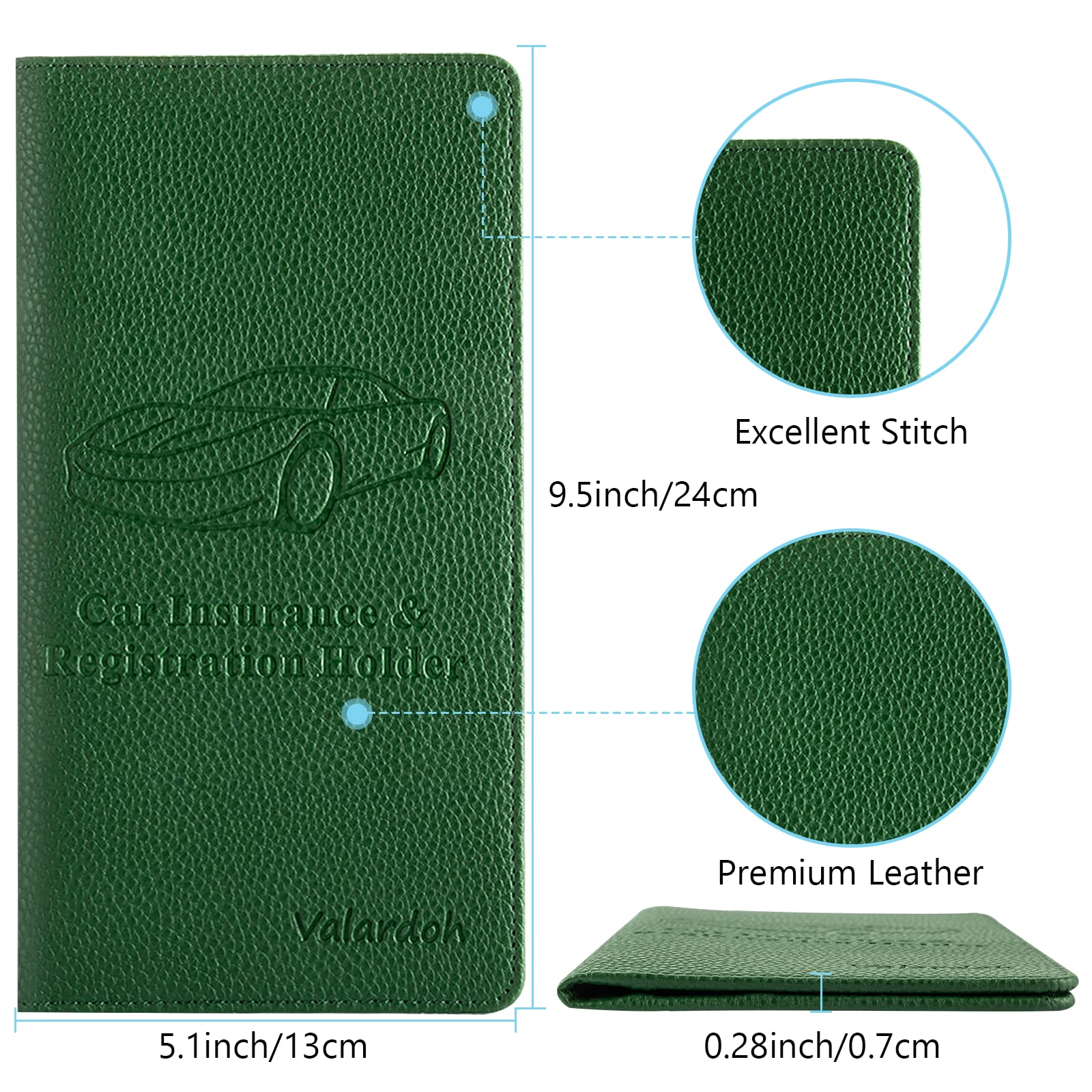 Description Scope of Delivery: 1 x Car Registration and Insurance Holder Features: Perfect size(9.5" x 5.1") to fit into your car console. 6 Pockets designed -- 2 on the left and 4 on the right. Magnetic closure holds each other and provide ease of use. This car document holder provides: Long lasting protection for your vehicle registration and insurance card, and other essential paperwork. The papers will not be scattered in the glove box anymore when owning this registration and insurance card holder.
