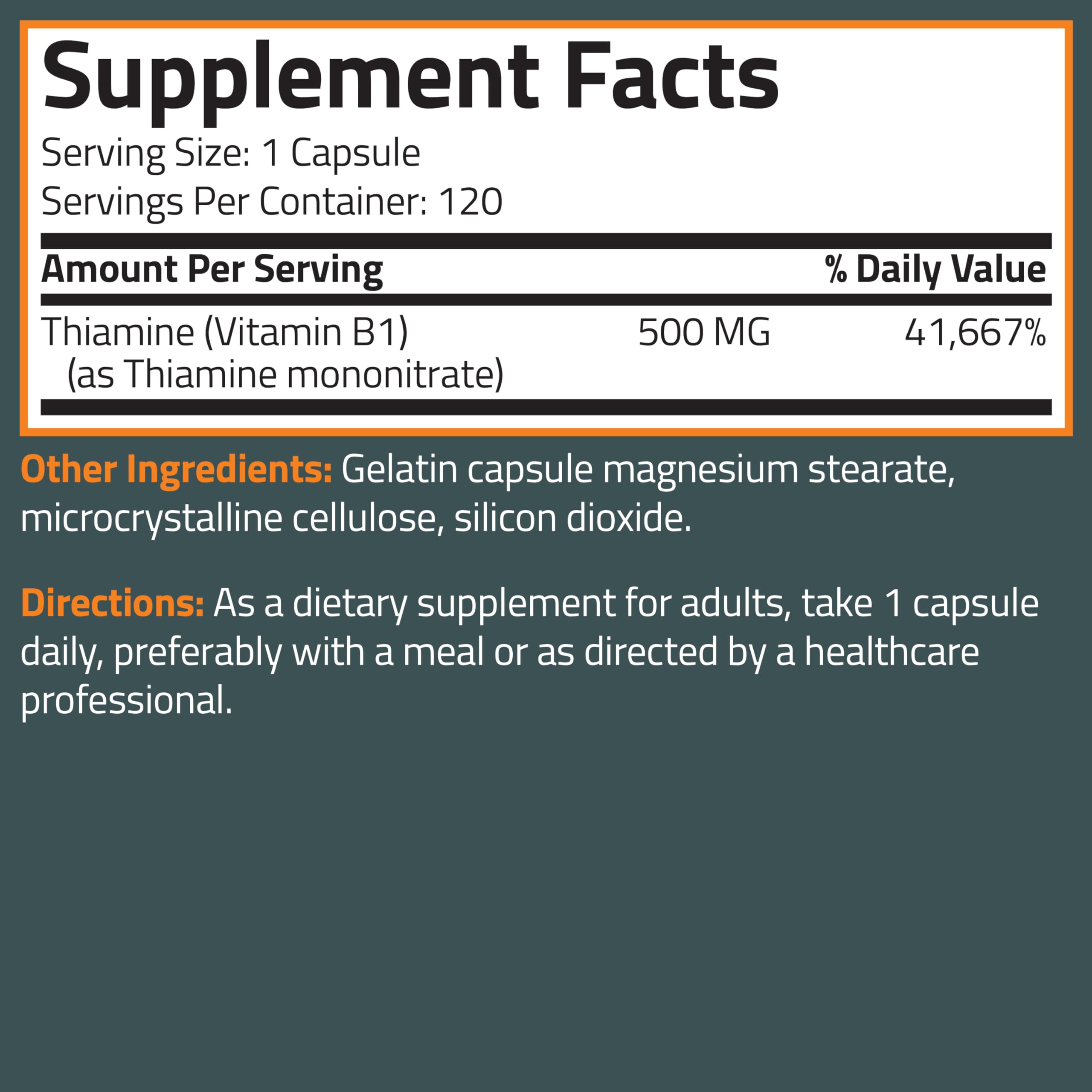 High Quality & Great Value: Bronson Basics Vitamin B1 Extra Strength provides a potent 500 MG per capsule for superior support. Take 1 capsule daily to support overall good health and well-being.* We strive to support your overall wellness through high quality supplements at an affordable value.