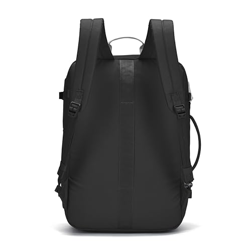 DIMENSIONS, WEIGHT & WARRANTY - 18.5"H x 12.6"W x 7.9"D Weight: 1.64 lbs. Made of soft, durable, water resistant & easy to wipe clean recycled polyester to ensure secure & long-lasting usage everyday & during weekends. Comes with 5-year Pacsafe warranty.