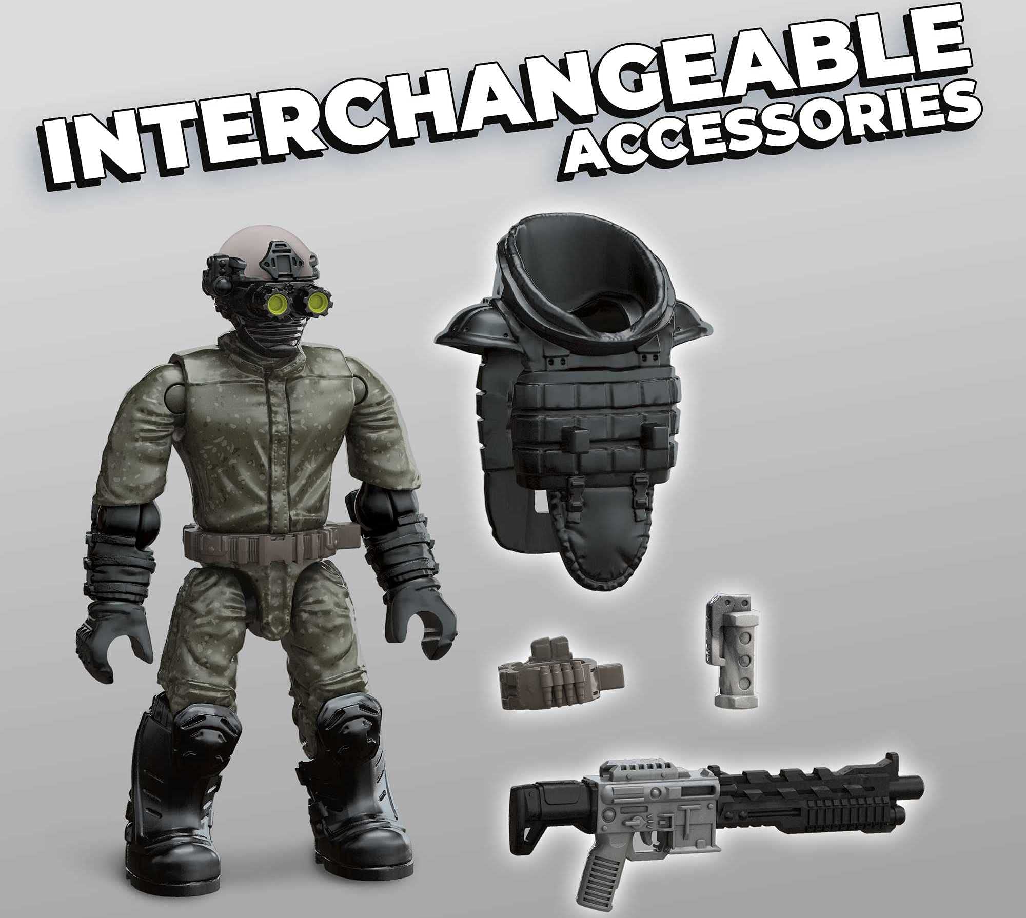 Deploy the Tactical Infiltration Team and tackle any assignment with 4 highly detailed, super poseable soldier micro action figures with detachable armor and accessories including a grappling hook and bolt cutters. Ideal for Mega Construx Black Series collectors, ages 16 and up