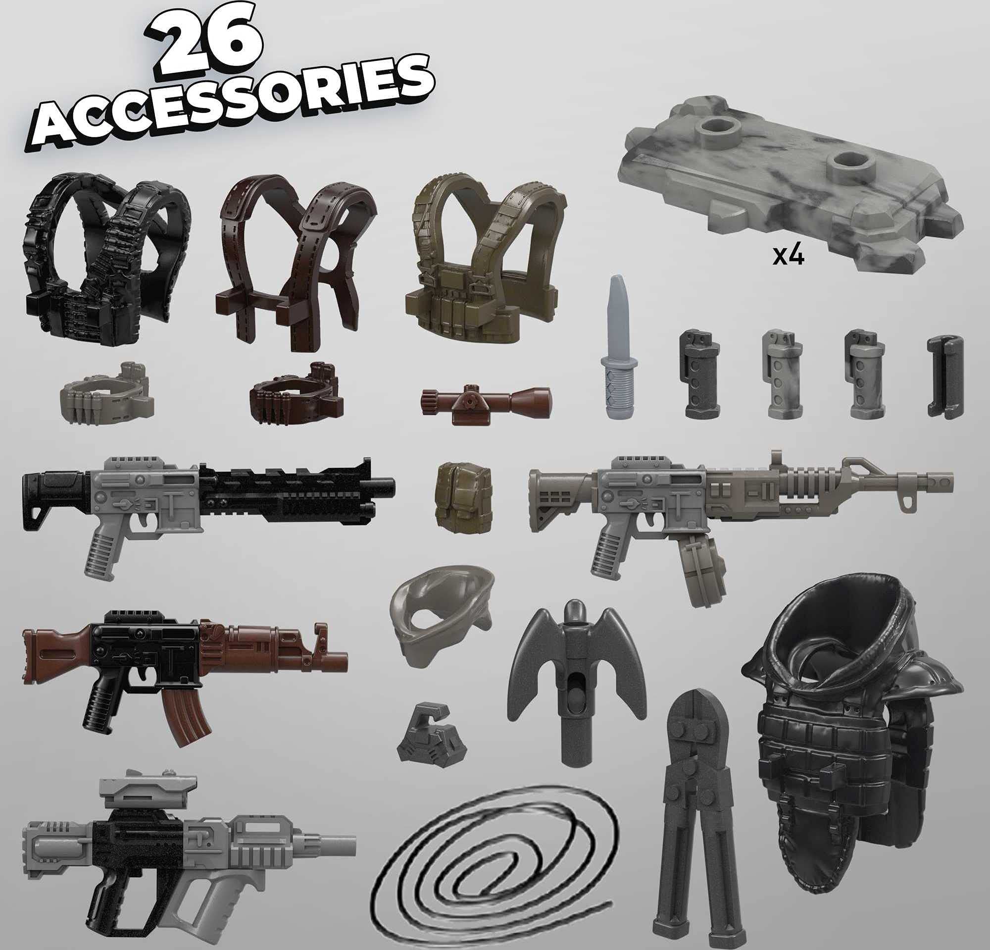 Team of 4 micro action figures, with authentic detail, 12 points of articulation, detachable armor and interchangeable combat accessories