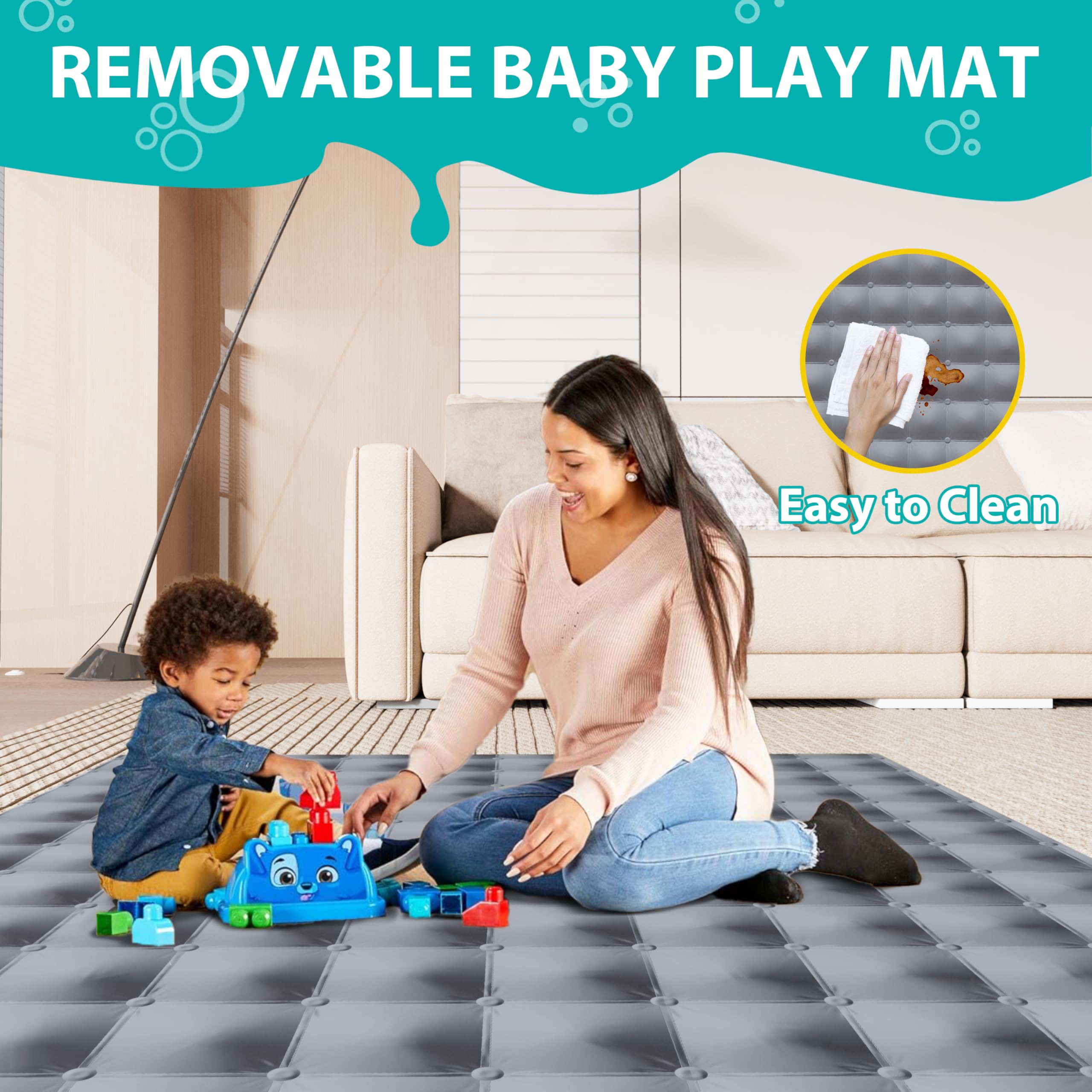 Removable Breathable Play Mat for Cushion: The included play mat features a high-quality material that is easy to clean, making it perfect for active toddlers. Perfect for crawling, sitting, and all-around exploration