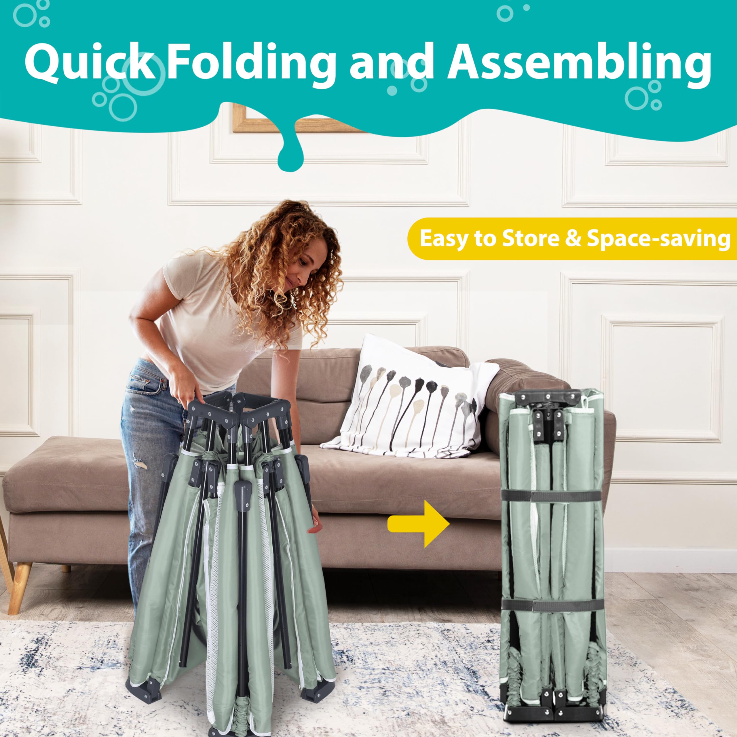 Easy to Assemble: Unlike other playpens, our baby playpen foldable has been upgraded for effortless assembly and disassembly, requiring no tools at all. You can complete the setup in just 1 to 3 minutes by yourself