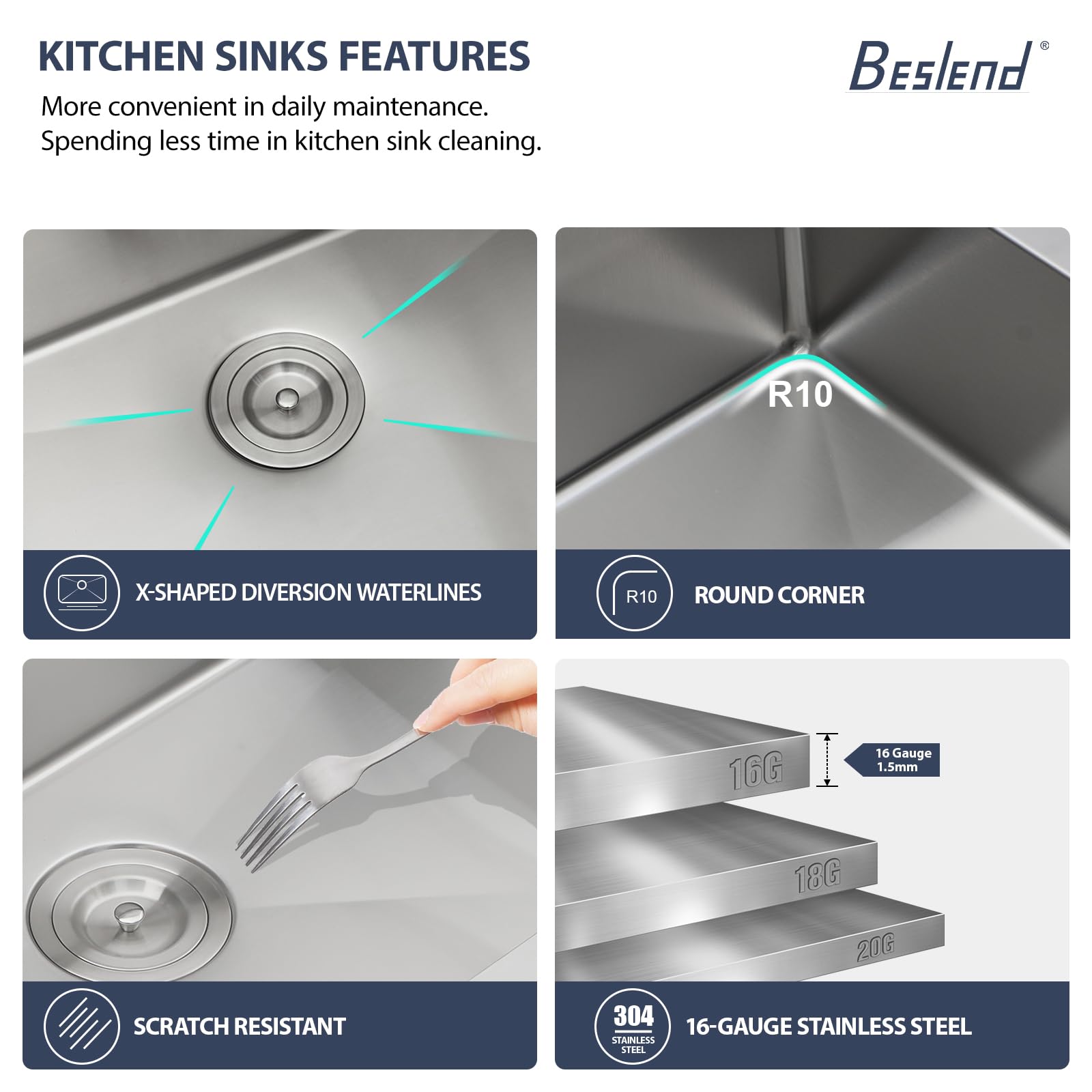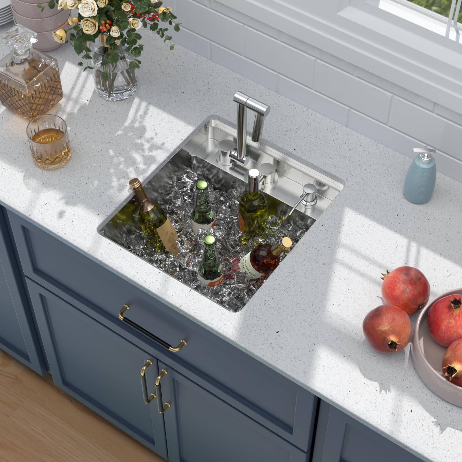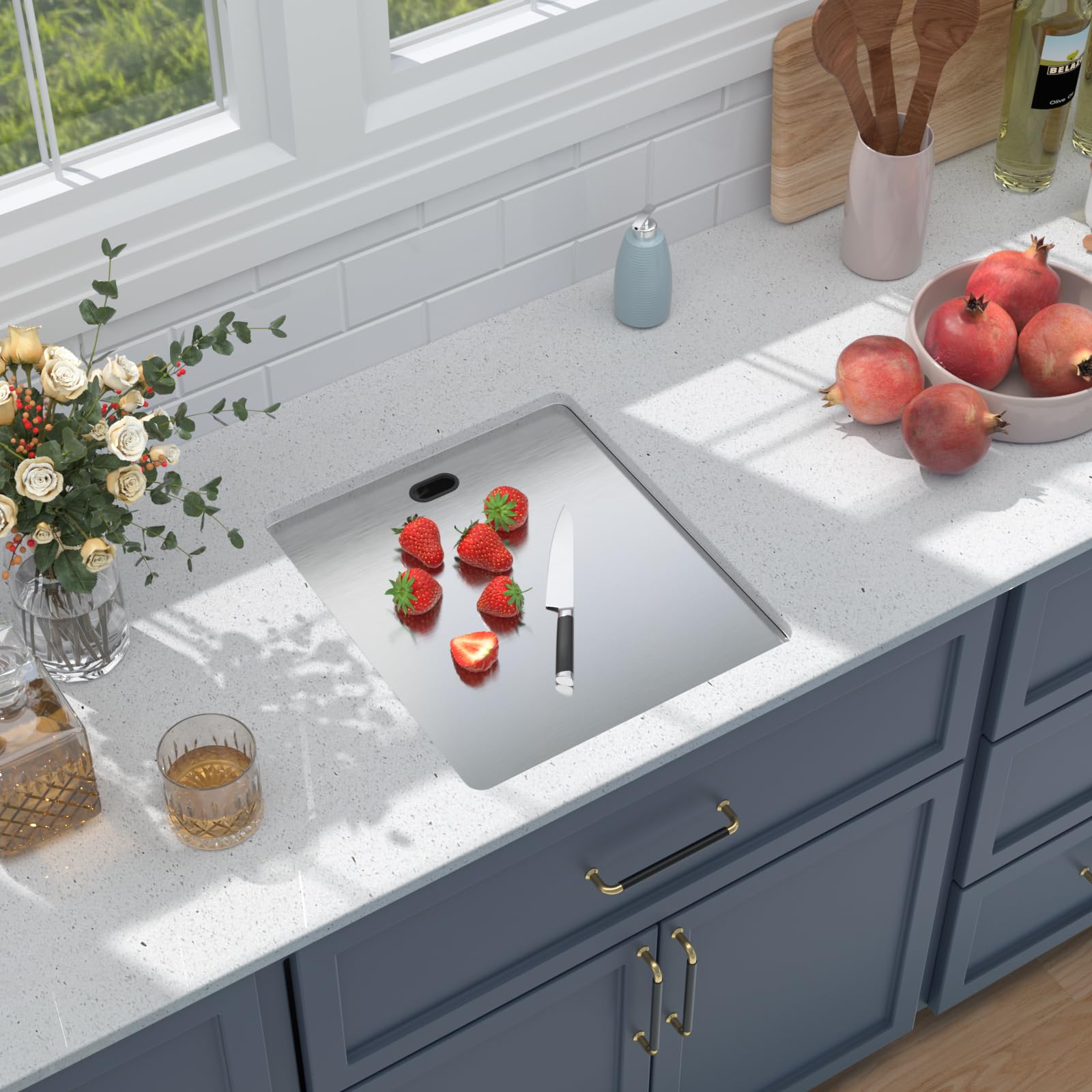 【Premium Stainless Steel Material】17-inch single bowl under counter indoor and outdoor kitchen bar sink is made of 16-gauge premium stainless steel, which is not easy to rust or corrode, sturdy and durable for long-term use. Brushed nickel sink surface, smooth and scratch resistant. Exquisite clean lines, full of industrial, modern style, suitable for home kitchen bar, bar, hotel and other scenes.