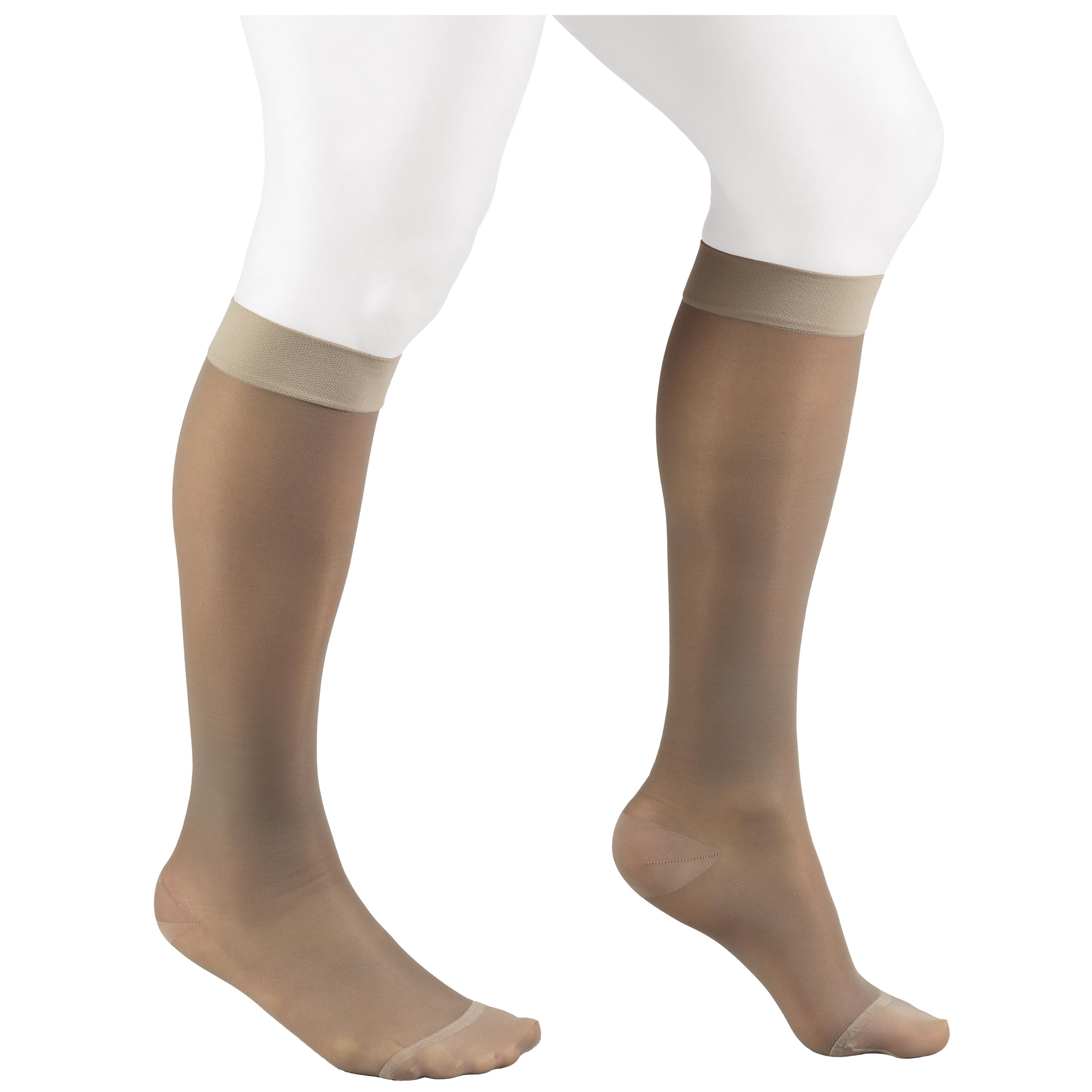 Closed Toe foot; Knee high length; over calf fit; Wide top band keeps sock from falling down