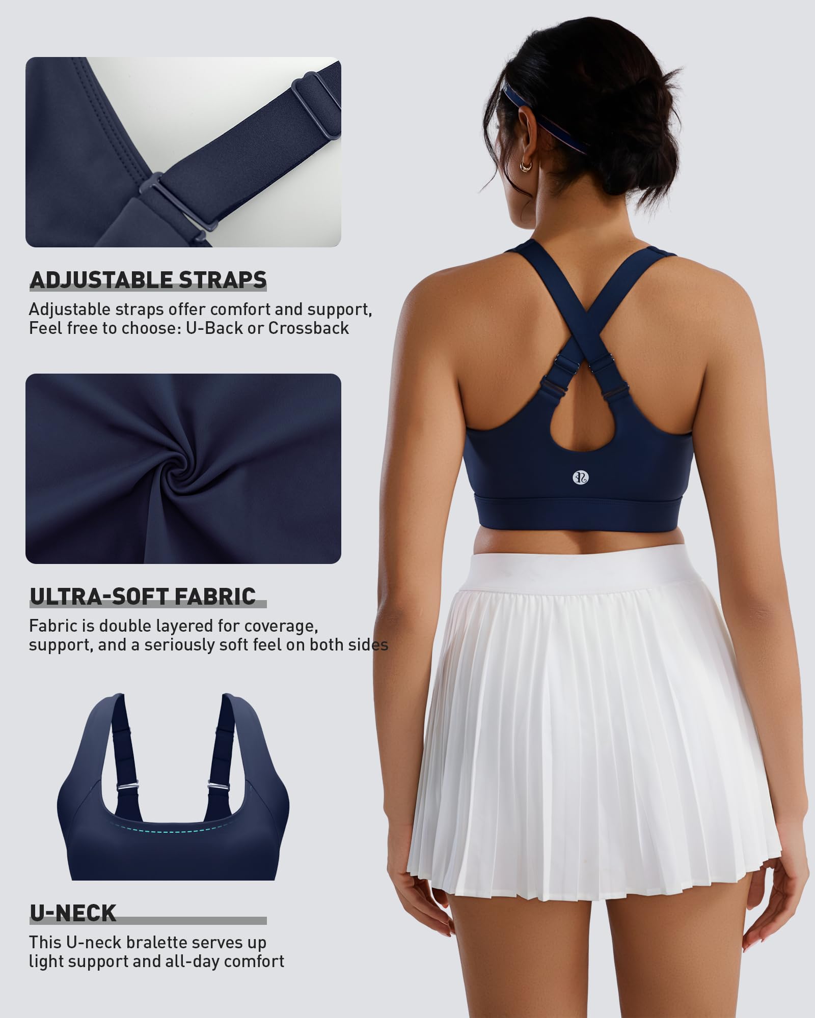 ✅ 【SWEAT OUT IN STYLE! 】: Made from a flexible four-way stretch fabric that supports your body as you move. Enjoy the freedom of movement as the open back styles aim to keep you comfy and cool while you bring on the heat! Running sports bras for women with wide waist band for that support we all need!