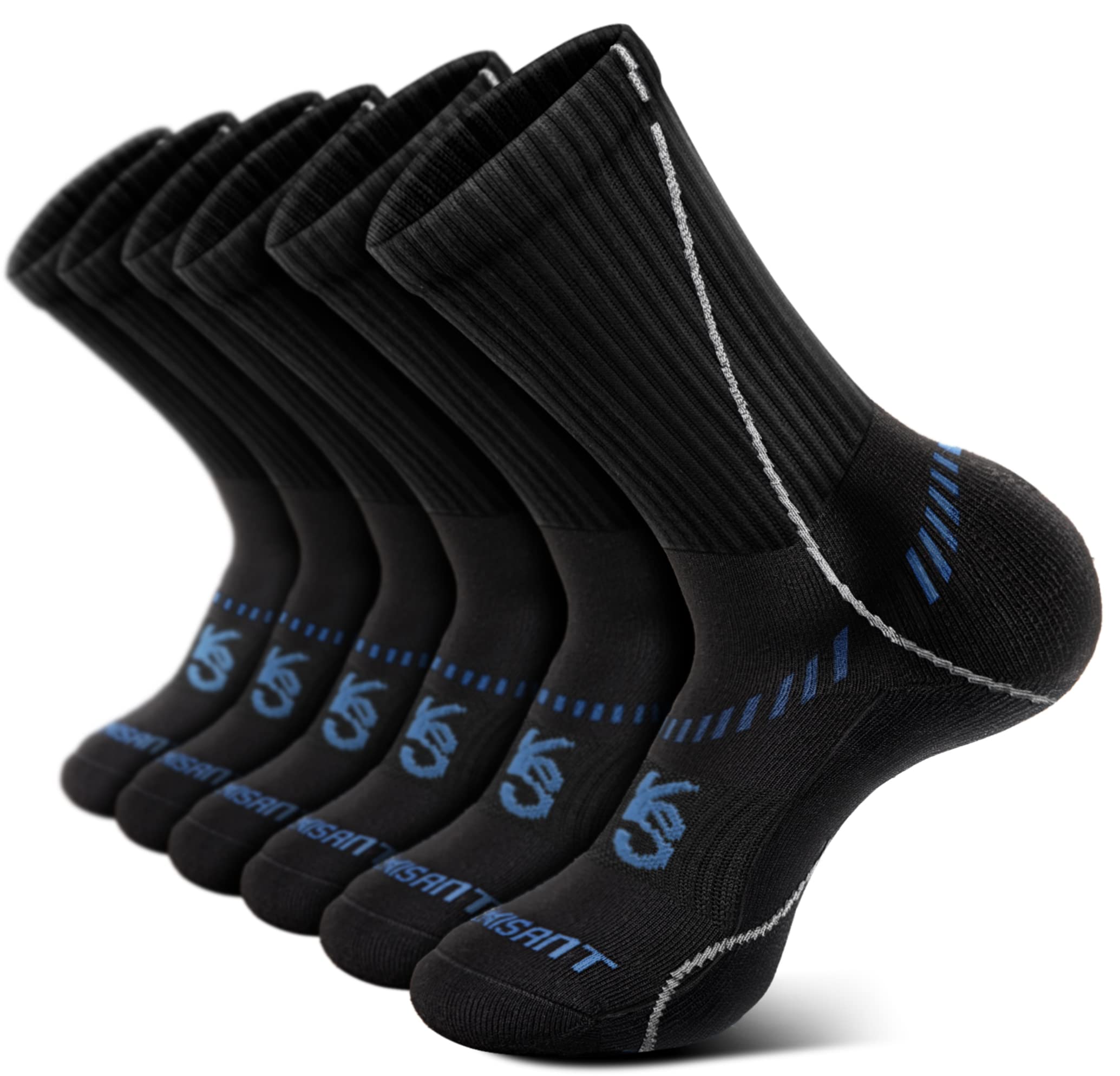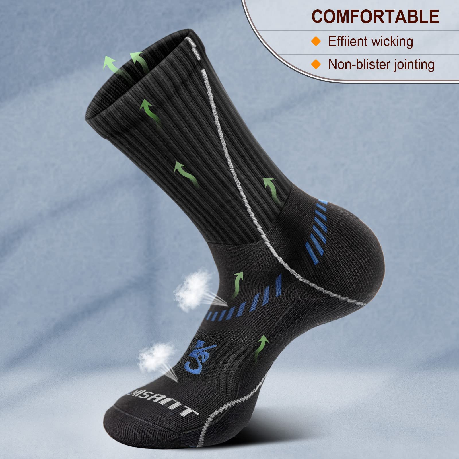COMPRESSION -- With proper stitching density, Its particular material composistion of yarns mixed with spandex provides these crew socks proper elasticity and good compression to feet, which can promot blood flow for a more comfortable experience;