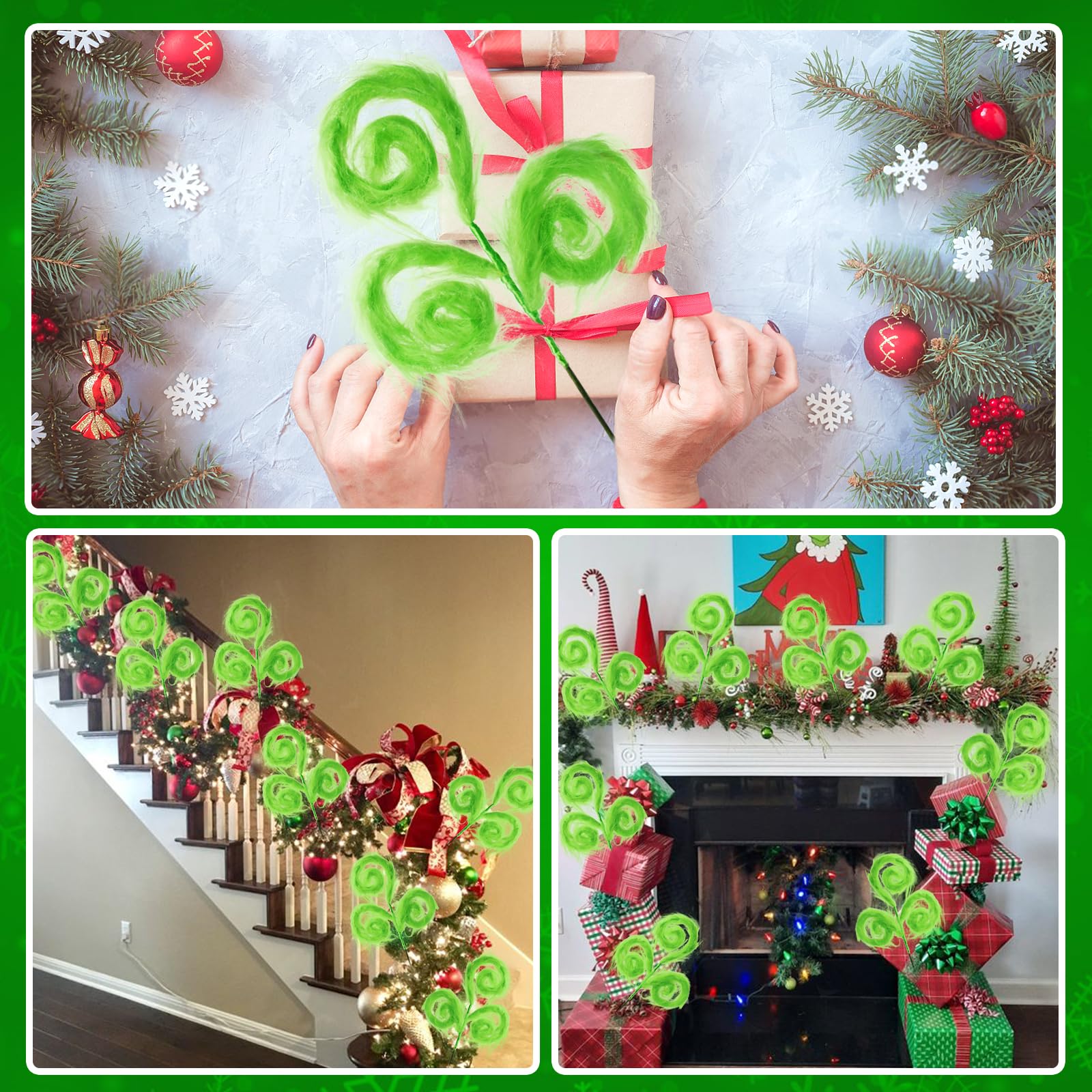 Christmas Tree Topper:These Christmas tree decorations use green as the main color,features furry picks with spiral curly stems branches,full of Christmas flavor, adding a unique touch to any arrangement