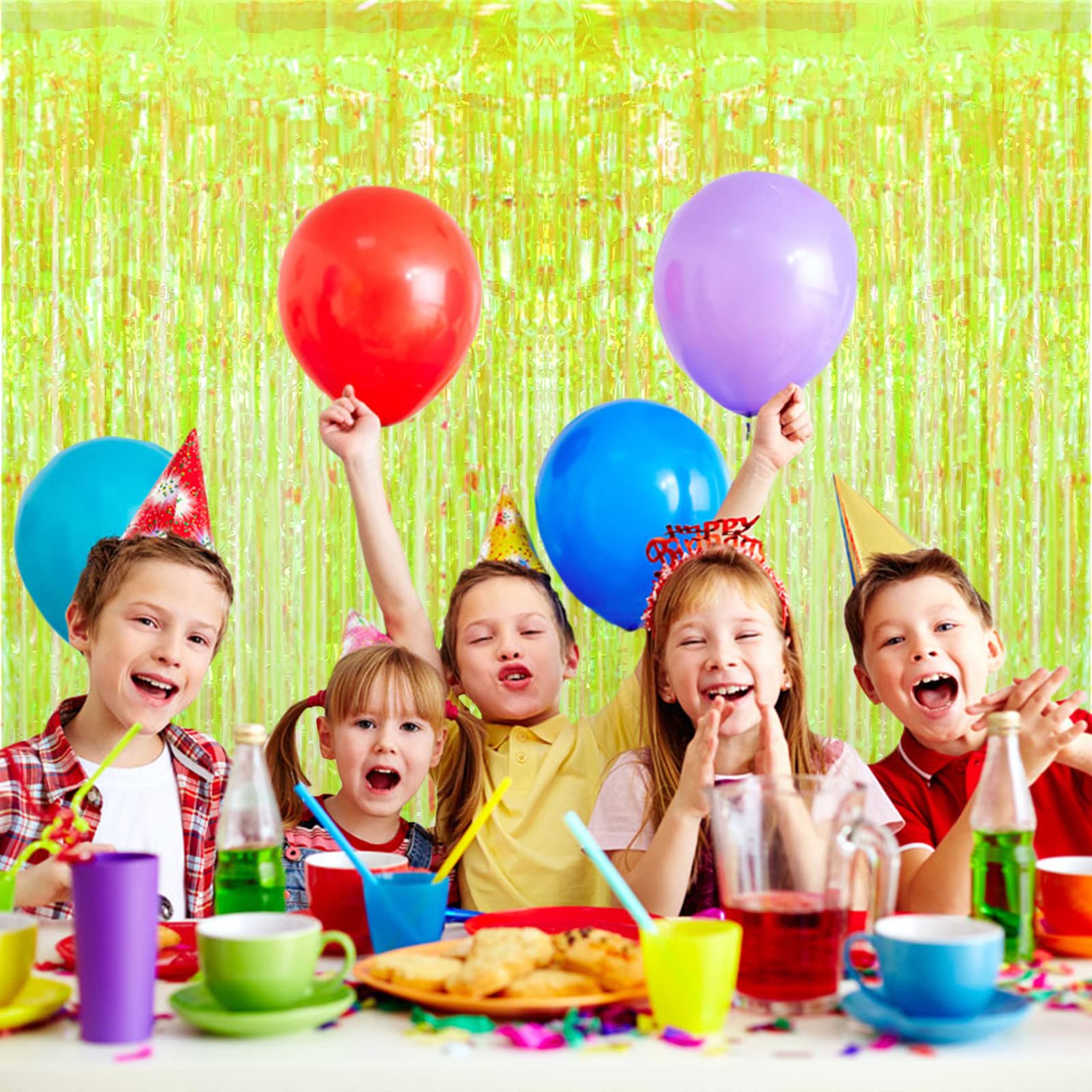【Multiple Applications】You can paste this green shimmer streamer photo backdrop curtain on the top of wall, window, table, door or anywhere you like. Hang this streamers green as green door streamers, jungle decorations or green decorations for party. With a touch of your imagination and creativity, you can put some balloons, banners, LED decorations and photo props on this background to make your fringe curtain more sparkling and colorful!