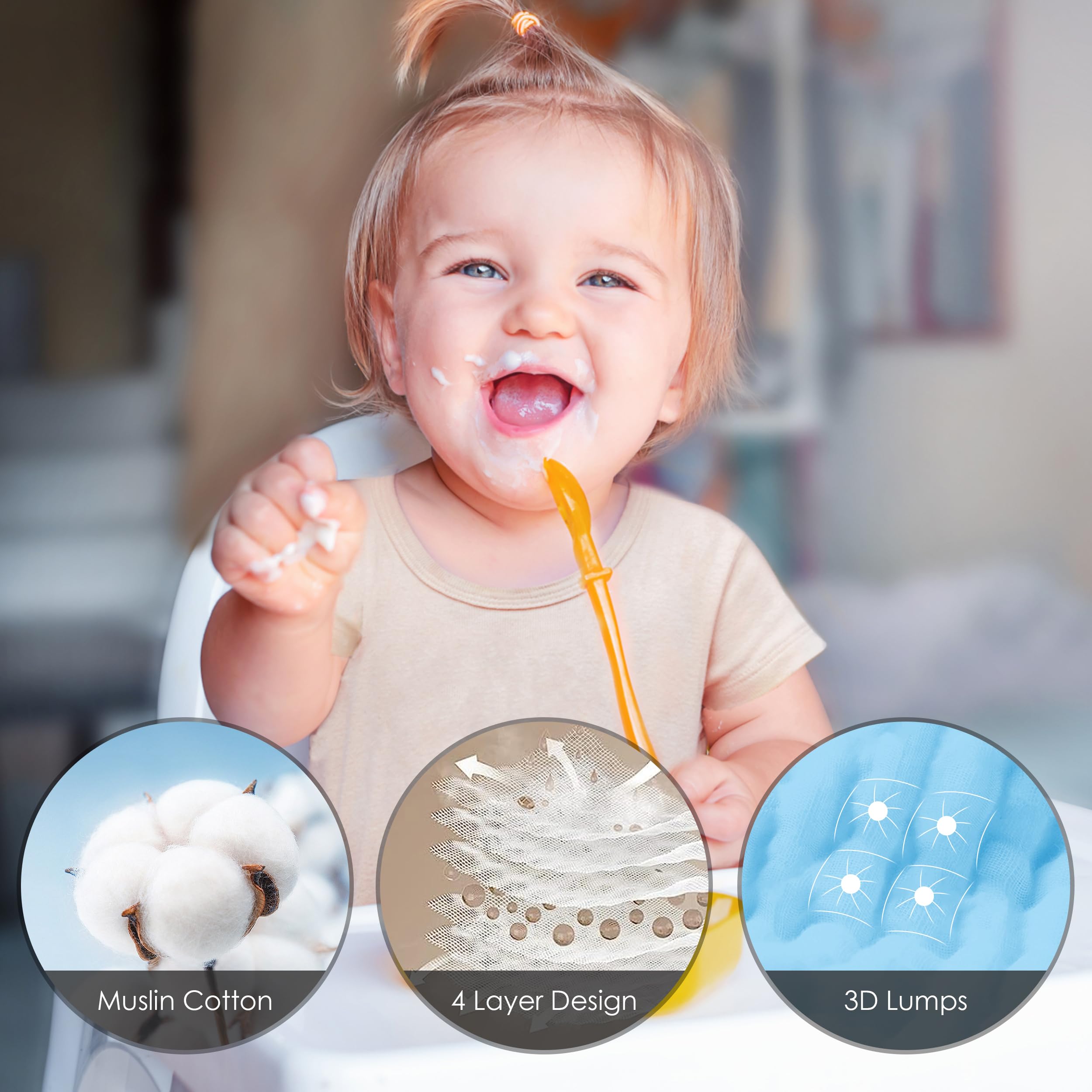 【Premium Muslin Cotton Washcloths】Indulge your baby with these ultra-soft and absorbent washcloths, crafted from 100% Muslin Cotton for a gentle touch on delicate skin.