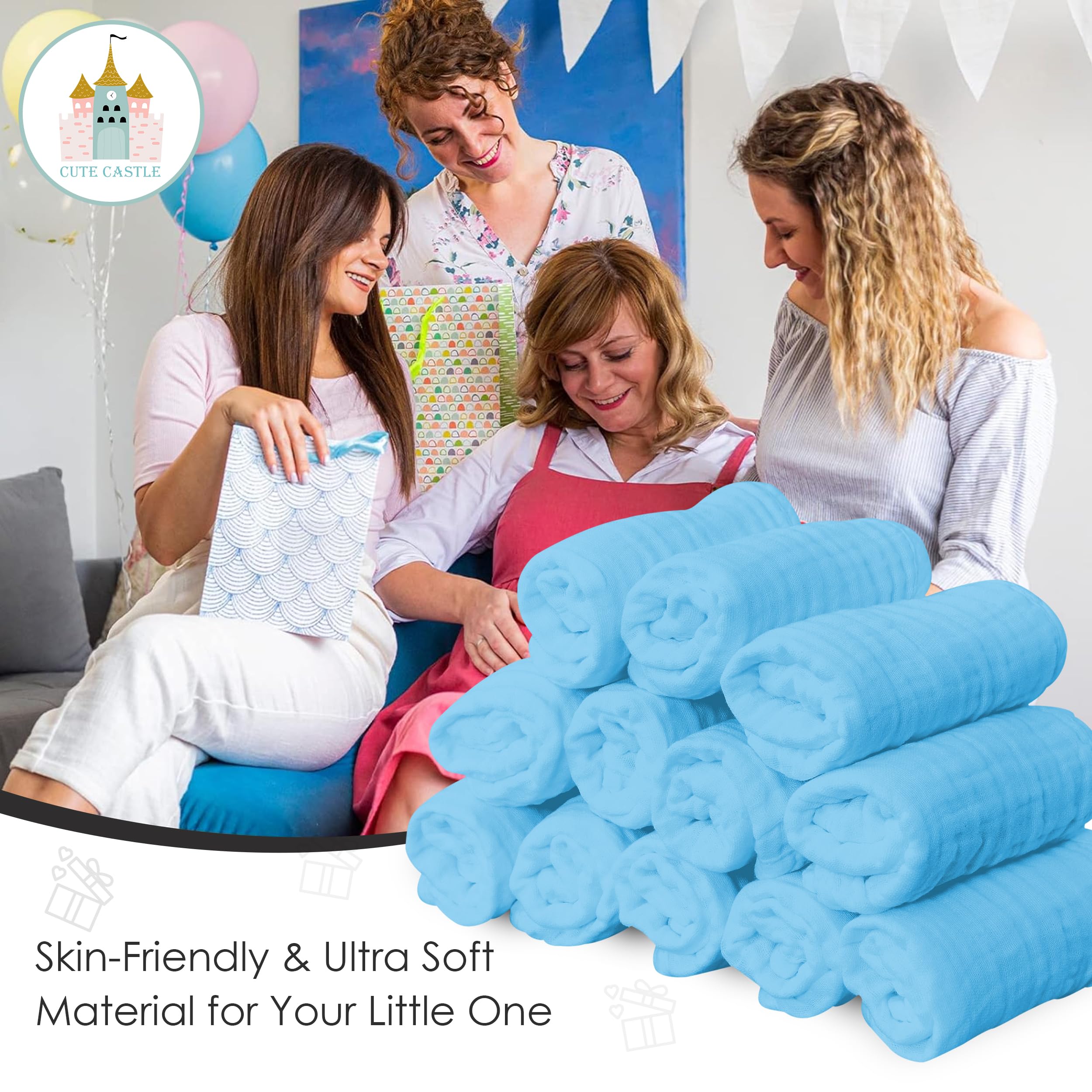 【Package Content】12-pack of Muslin Baby Washcloths, 12 x 12 inches, perfect for all your baby's bathing needs.
