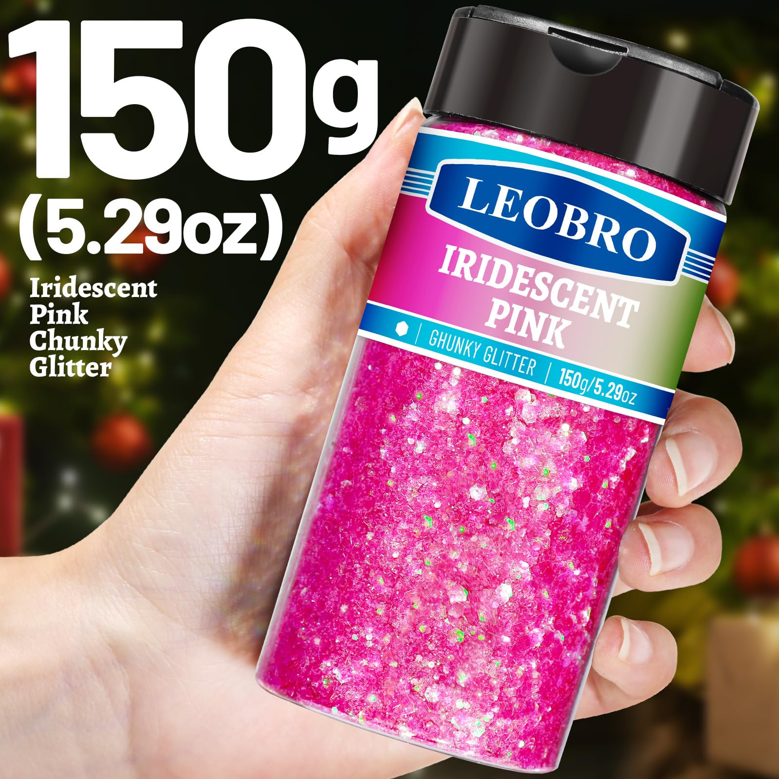 Iridescent Pink Glitter: 150g/5.29oz pink glitter, eye-catching hot pink with a captivating secondary rainbow effect, full of romance and passion, perfect for DIY art and crafts. Large amount, good value for supporting abundant creative DIY projects.