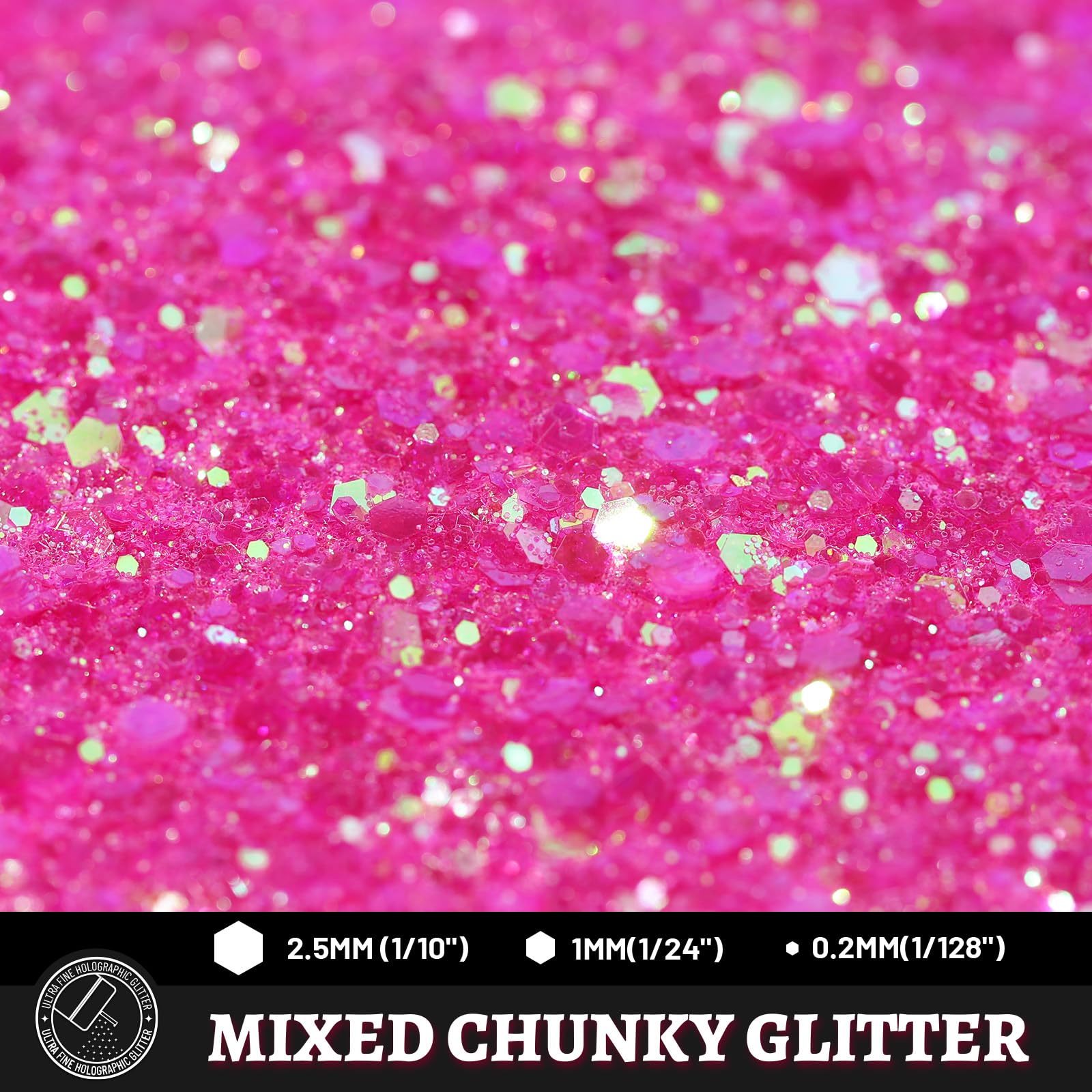 Dazzling Mixed Chunky Glitter: Contain 0.2mm/1mm/2.5mm glitter, from fine to chunky, each contributing to the overall shimmer, making it shine stunningly and ideal for enhancing a wide range of items. Create projects that truly stand out.