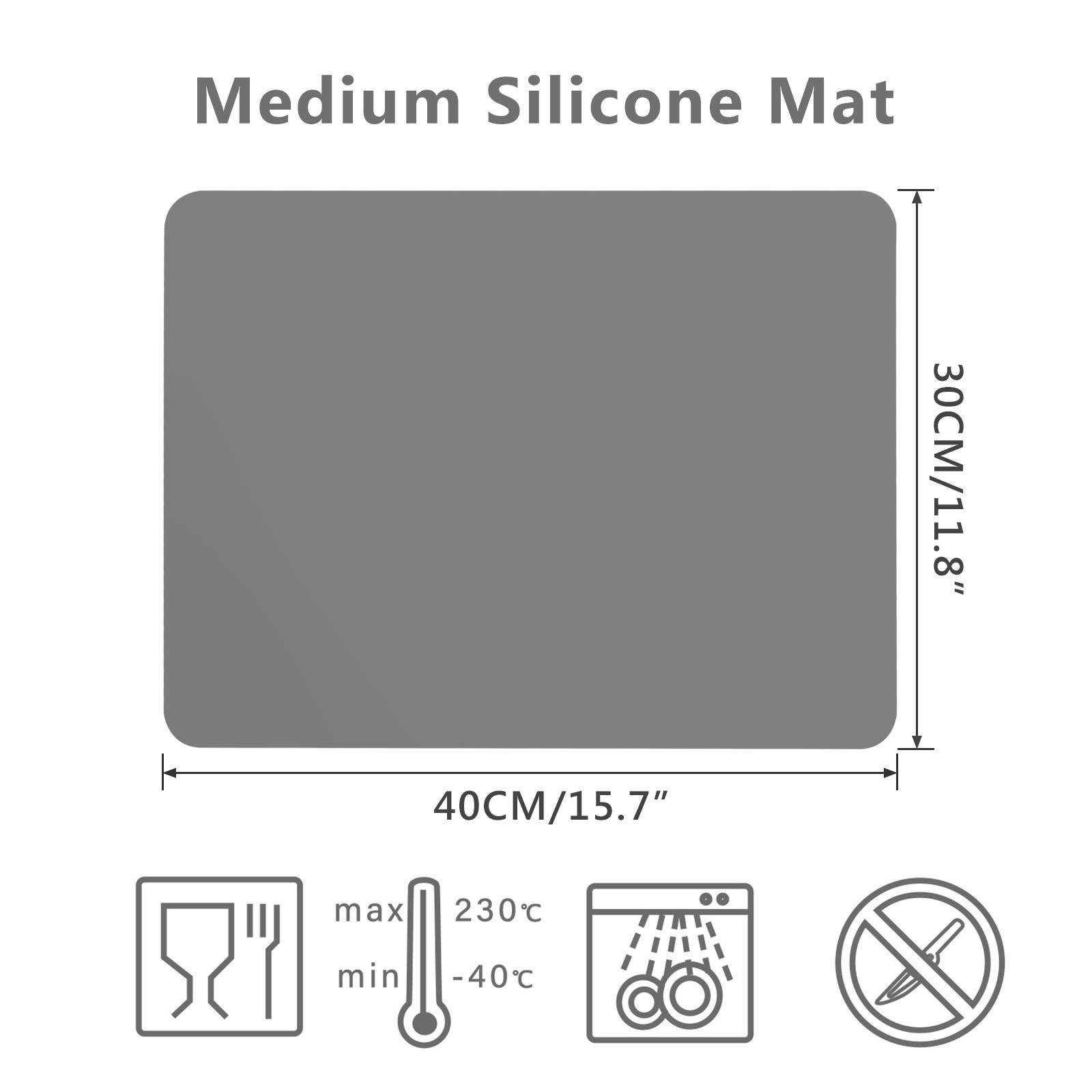 NON-SKID BACKING - 3pcs of standard MEDIUM size silicone sheets measures 15.7 x 11.8 inches / 40 x 30 cm. A side is smooth surface (use this face down), the other side is frosted (use this face up).
