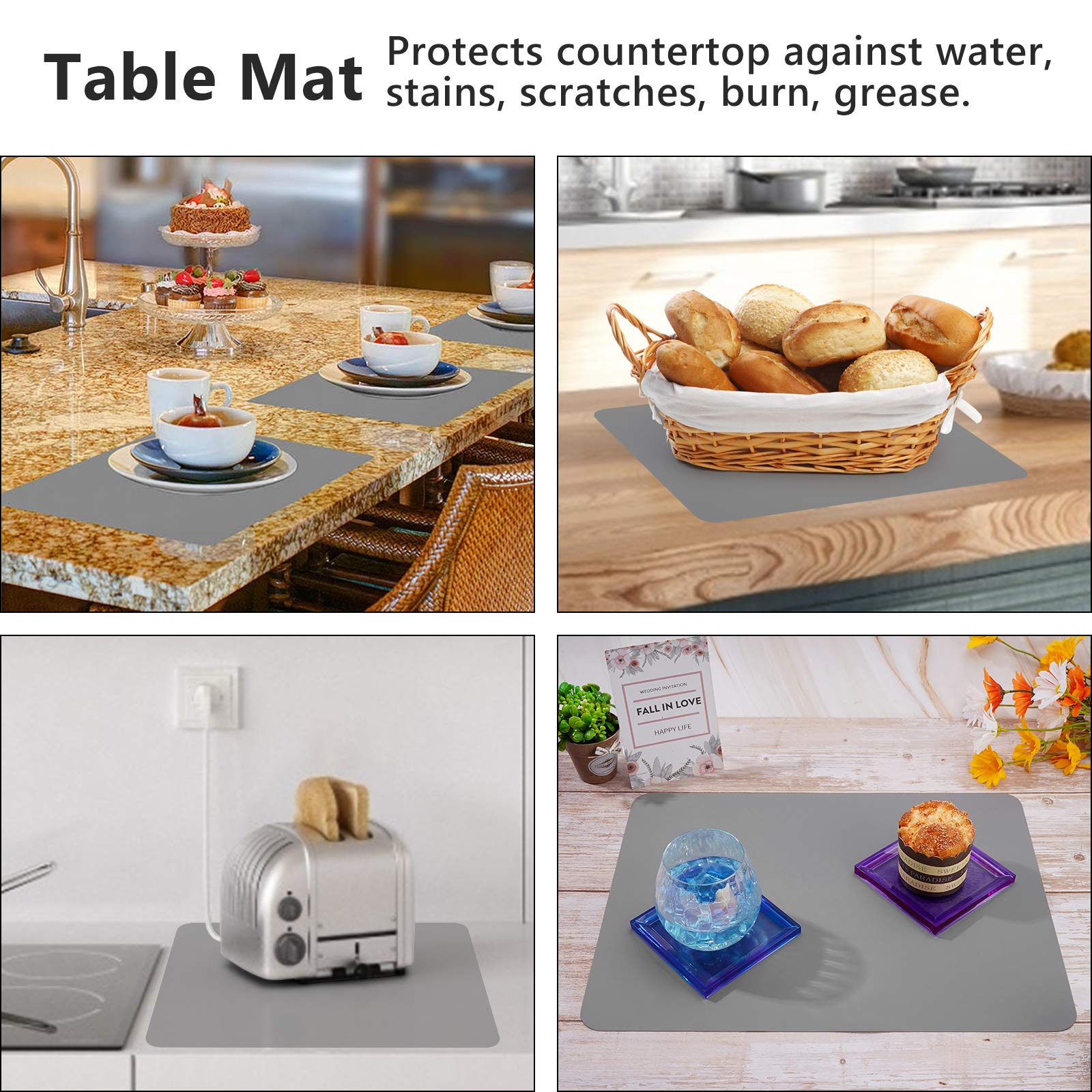 MANY USAGES - Silicone craft mat for casting molds, resin jewelry casting molds mat, paper crafting, kid painting, and other arts craft projects, placemats, pot holder, coasters, dish mats, tableware, trivet, drains, heat insulated pads, dining tables, kitchen counter top protector. sticks nicely to countertop. to protect the surface. Keeps counter clean and absorbs heat.