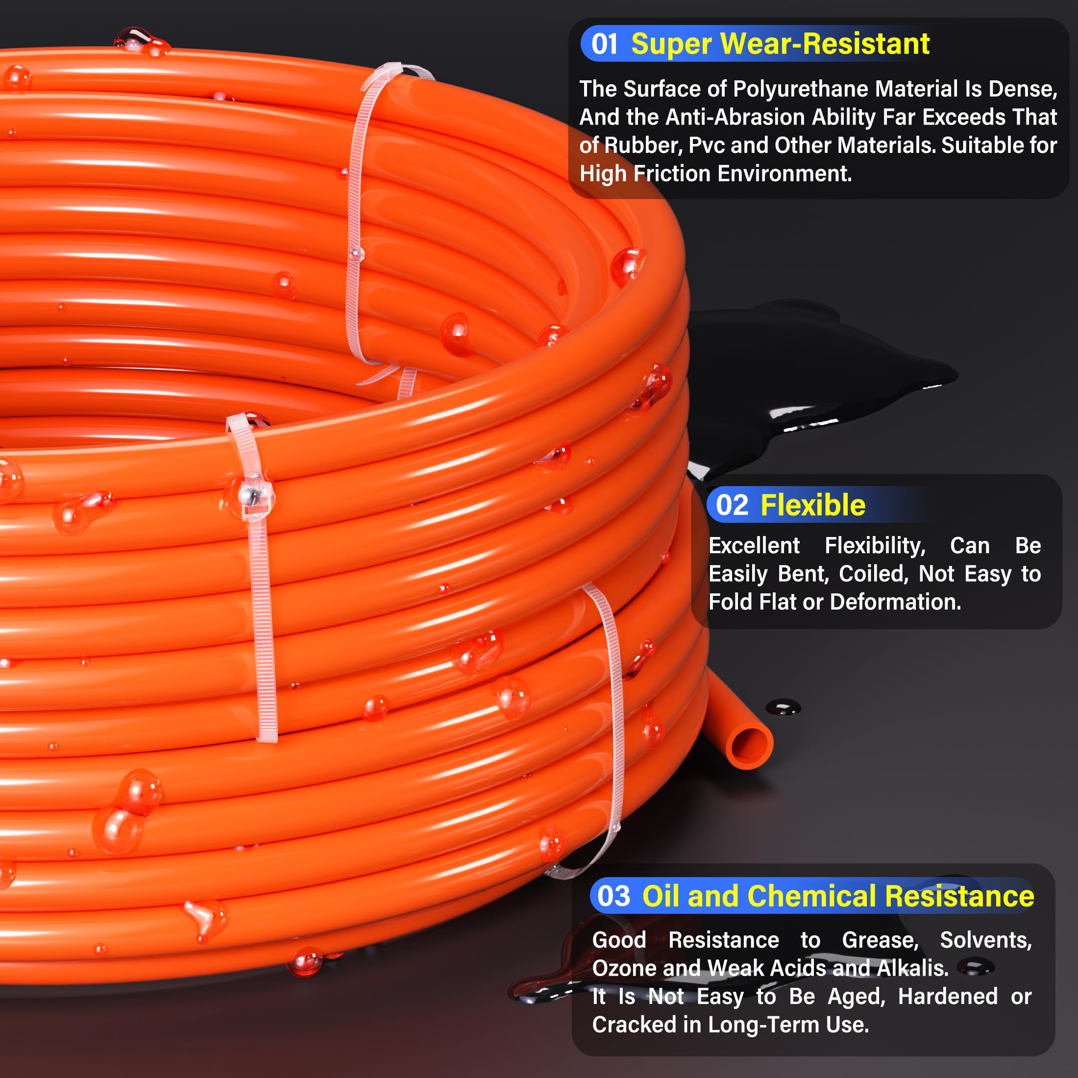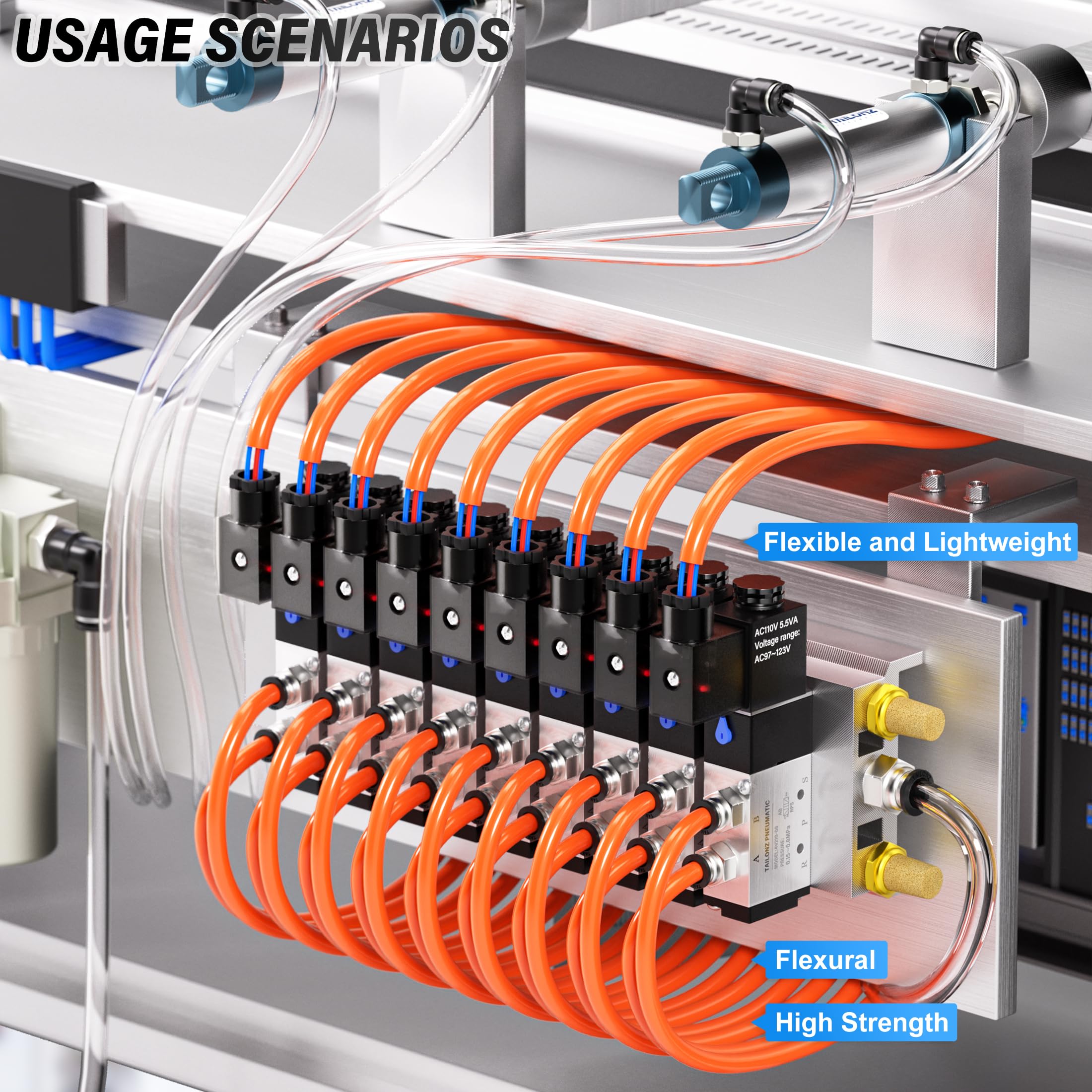 ★Product Feature: ①Using Flexible, Has High Elasticity To Restore Memory Effect,folded Without Creases, And The Hand Feels High Toughness. The Surface Of The Hose Is Smooth And Flat, The Color Is Bright. ②Pu Air Hose Features: Light-weight; Abrasion And Chemical Resistance;tasteless ; High Mechanical Strength, Minimal Pressure Loss; Convenient For Piping As It Has Better Flexibility Than Nylon Tubes. ③Air Compress Hose Working Medium: Compressed Air, Vacuum ( Not Other air Or Liquid); Application Of Air Tube: Used For Piping Of Pneumatic Devices. ④Exhaust The Pu Tube To The End And Then Let Go, The Pu Tube Will Immediately Return To Its Original Appearance, No Creases, High Elasticity Recovery, Anti-aging. ⑤It Can be Used for The Connection of pipes and The Use of Different Pneumatic Components, and Has a Wide Range of Uses. ★Product Specification: ✔Material: Pu; Flexible, Has High Elasticity To Restore Memory Effect. ✔Size:1/2"Tube OD(10Meter) ✔Temperature Range 0-60°C | -4~176°F ;Pressure Range: 0-1 Mpa145 psi Max pressure:1.5 Mpa/ 217 psi/15 bar ✔Flexibility: The Surface Of The Hose Is Smooth And Flat, The Color Is Bright, And The Hand Feels High Toughness. ✔Light Weight, Abrasion Resistance, Chemical Corrosion Resistance, Non-toxic, Odorless, Low Pressure Loss, Better Flexibility , Easy Pipeline Transportation. ✔Use Range: Pneumatic Pneumatic Tools; Instruments,mechanical air Pipeline; Laboratory Automation Equipment; General Industrial Water And Gardening. ★Package Included: 1 × 1/2''OD PU Tube(10Meter) 2 × PE-1/2(Union Tee) 2 × PV-1/2(Elbows) 2 × PY-1/2(Y Spliters) 2 × PU-1/2(Straight Unions) 4 × PC-1/2-N2 6× PPF(1/2''OD) 6× PP(1/2''OD) 1× Teflon Tape 1× Tracheal Scissors