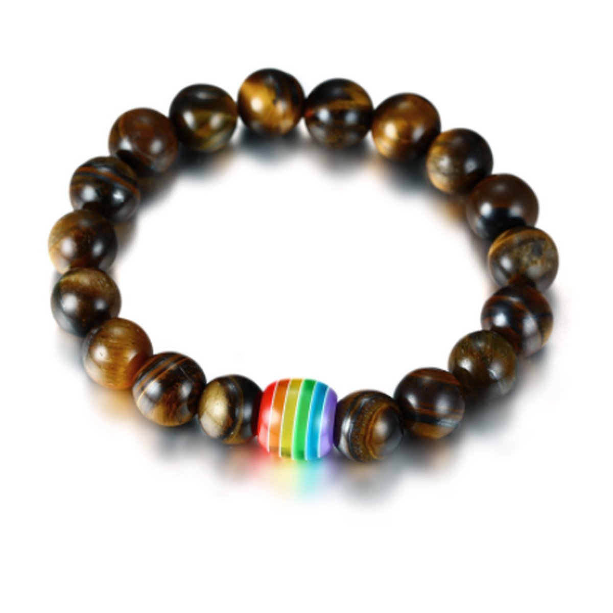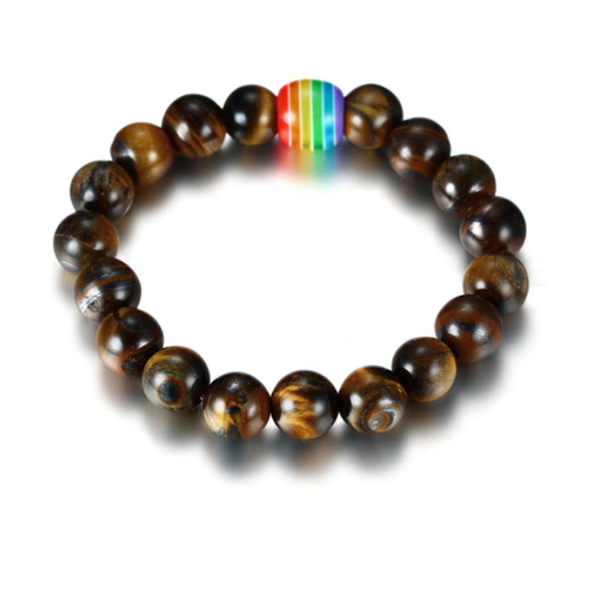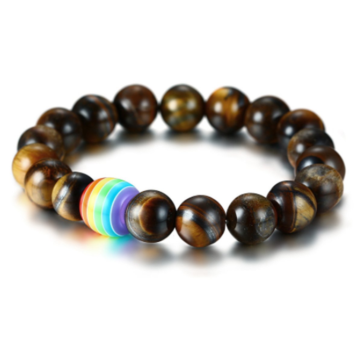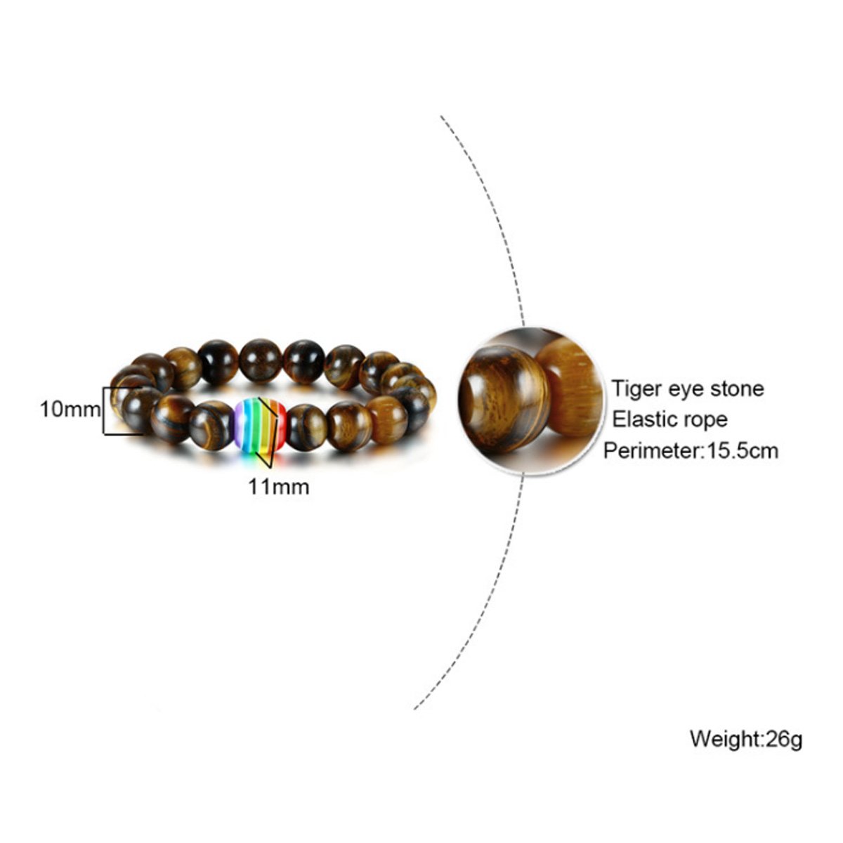 10mm Tiger Eye Stone Beads and 11mm rainbow bead Bracelet with elastic rope, fit for the most people, comfortable to wear, perfect gifts for gay and lesbian