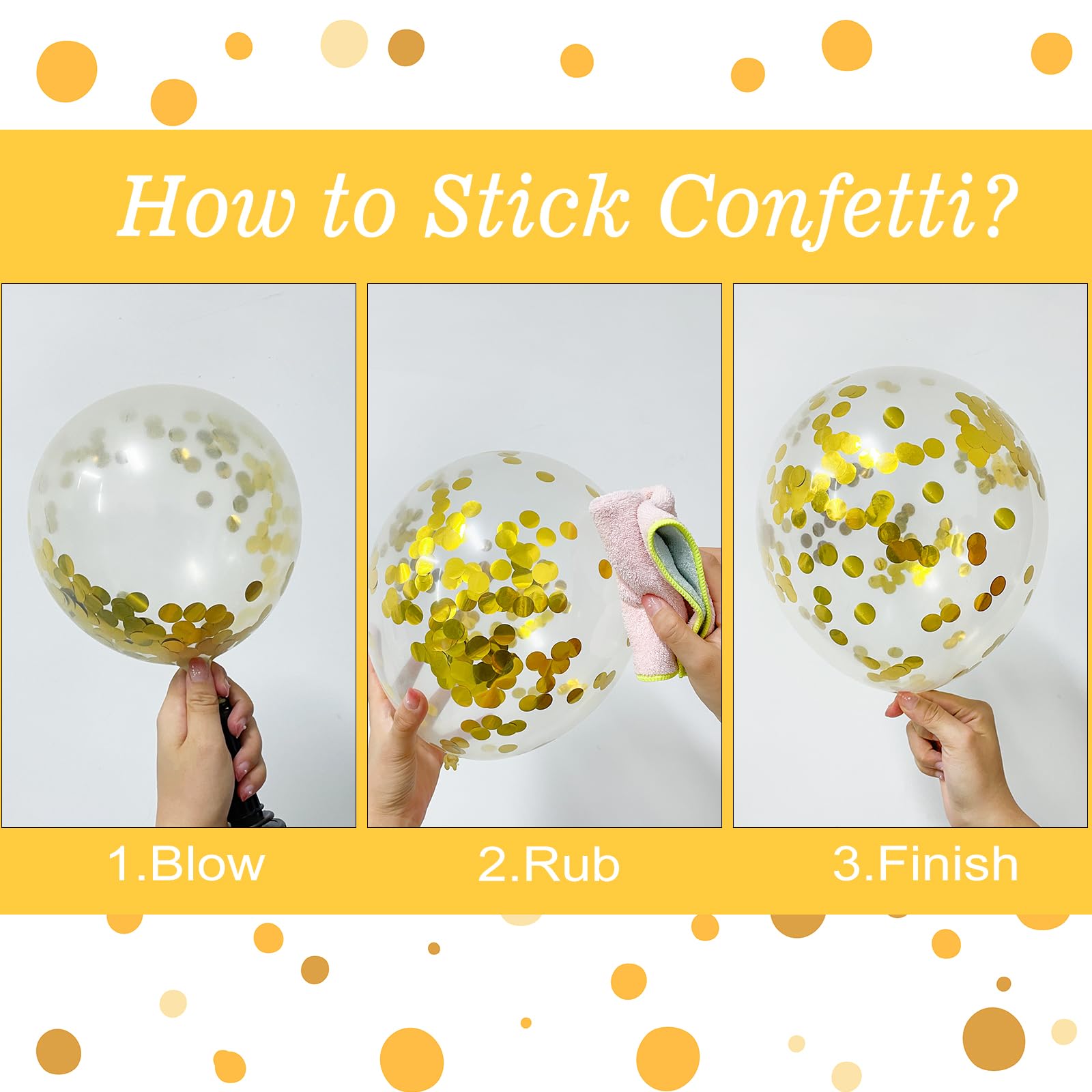 Easy to use: Balloons support both air and helium, after blowing up the confetti balloons, rubbing the balloon on hair or fabric wool and shaking it will help confetti stick to the side, which can make balloons look more beautiful