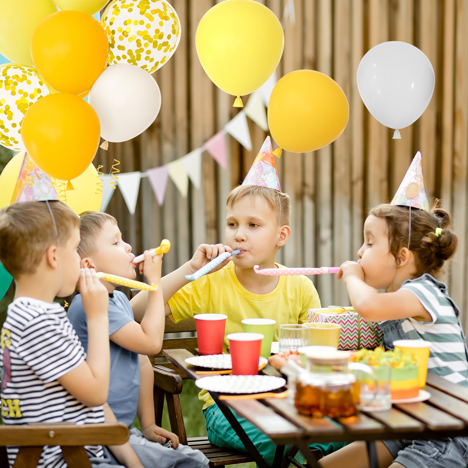 Yellow Party Balloon Kit- Yellow White and Gold Confetti Balloons with Ribbons Decorate your party, make your event full of warm and elegant atmosphere Features: Made of high-quality latex material, dissipating the smell quickly. The balloons are thick enough so it would not be easy to explode Package includes: 18pcs yellow balloons 18pcs pastel yellow balloons 18pcs white balloons 6pcs gold balloons 6pcs confetti balloons 2pcs ribbons yellow and white Apply occasion: For sunflower honeybee theme parties, birthdays, baby showers, weddings, graduations, opening ceremonies, anniversary celebrations decorations, indoor and outdoor events