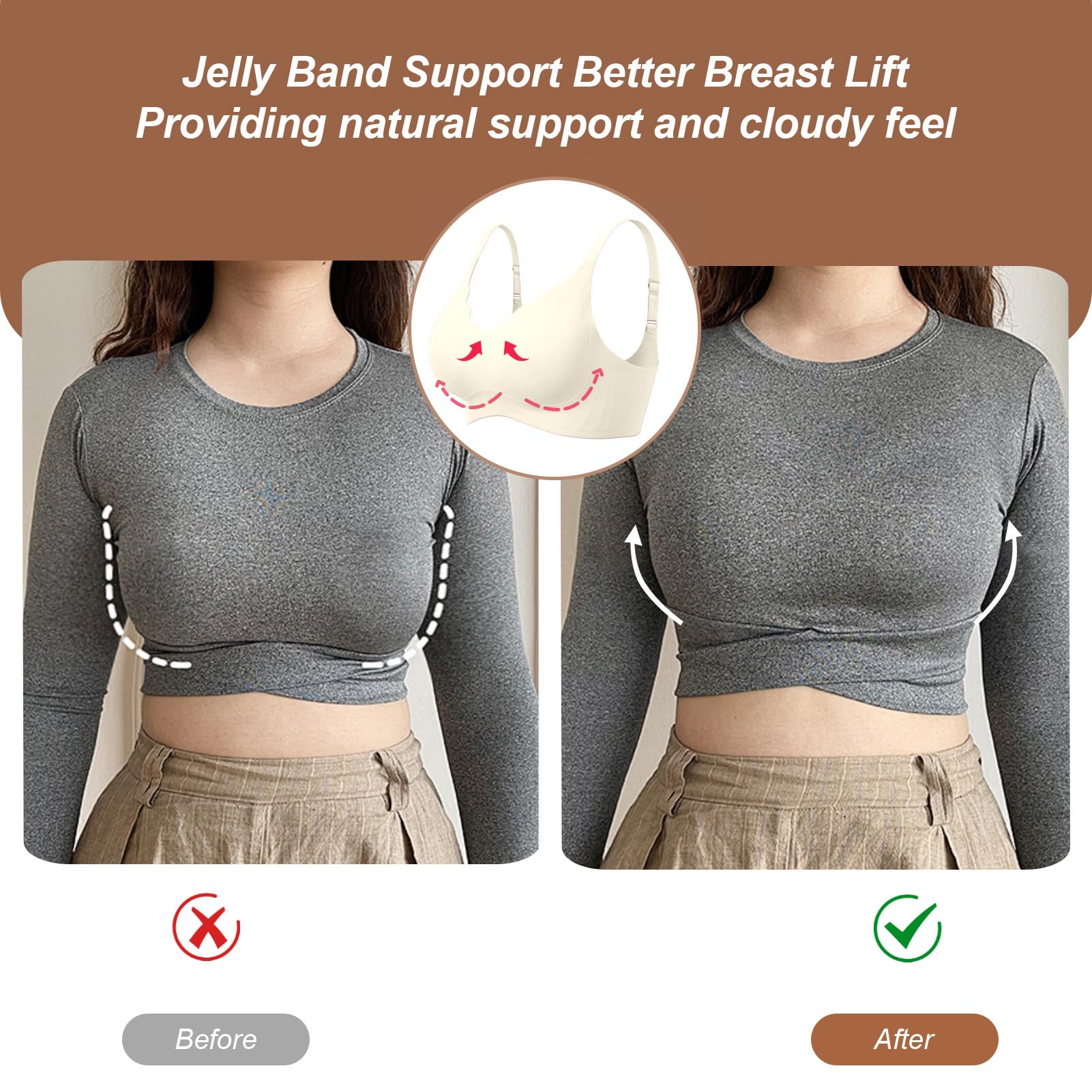 Soft Supportive bras with Jelly Band - OEAK Push Up bras feature a bigger hugging “W” shape and innovative 3D support technology formed by the liquid jelly band provides 360°round support for your breasts, creating a fully and natural-looking chest without the discomfort of a traditional underwire bra. The wireless bra with removable pads adds to the comfort level, ensuring a buttery soft feeling, and maximum comfort all day long.