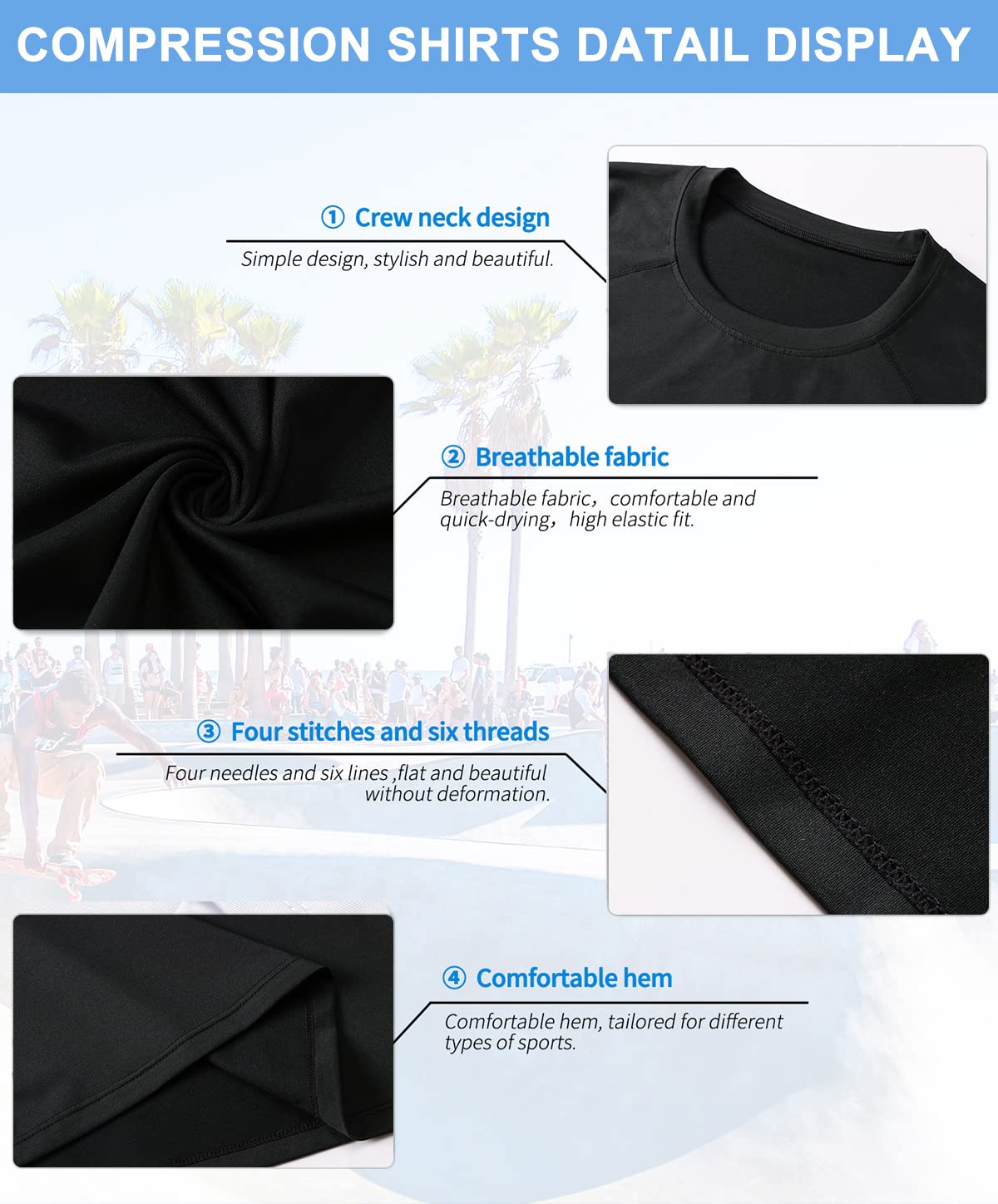 ➤【PREMIUM SPORTS COMPRESSION SHIRTS】: Non abrasion fabric material with excellent elasticity and durability. Smooth and Ultra-Soft Fabric that provides extreme comfort with very little weight without restriction. Tight Fitting, like a second skin.