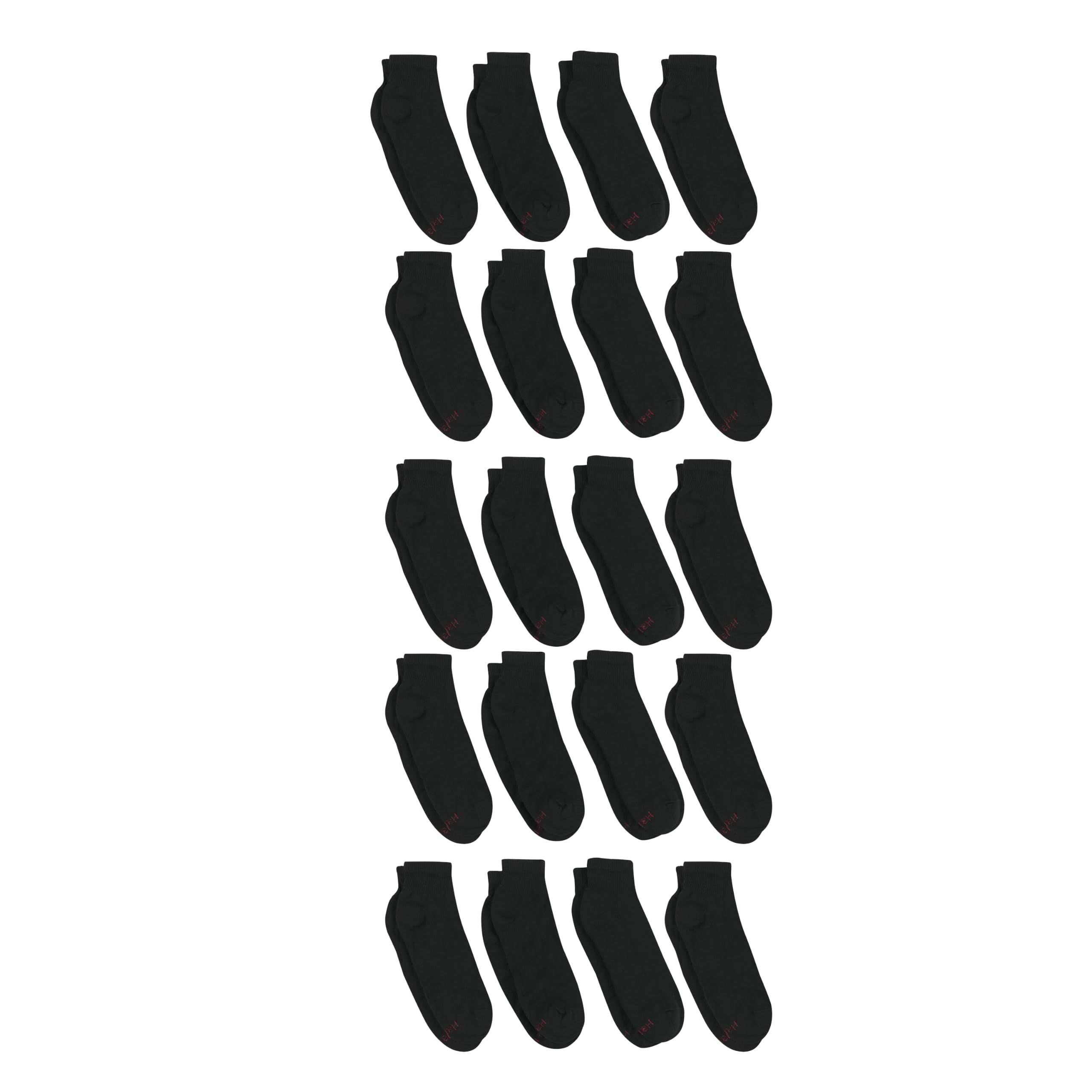 Description There's a lot to like in Hanesยฎ Double Tough men's ankle socks. These ankle socks are made to last and cradle your foot while doing so with a reinforced, cushioned bottom you'll appreciate with every step. These classic ankle socks are made with Hanes' high-tech features, including Cool Comfortยฎ fabric that wicks away moisture to keep feet cool and dry, and FreshIQโข advanced odor-fighting technology that attacks odor-causing bacteria to keep feet smelling fresh. Smooth toe seams enhance comfort even more, and a touch of spandex in the poly-cotton knit assures a stay-in-place fit. Stock up on these made-to-last quarter socks in a convenient 14-pack and fill your sock drawer with comfort.