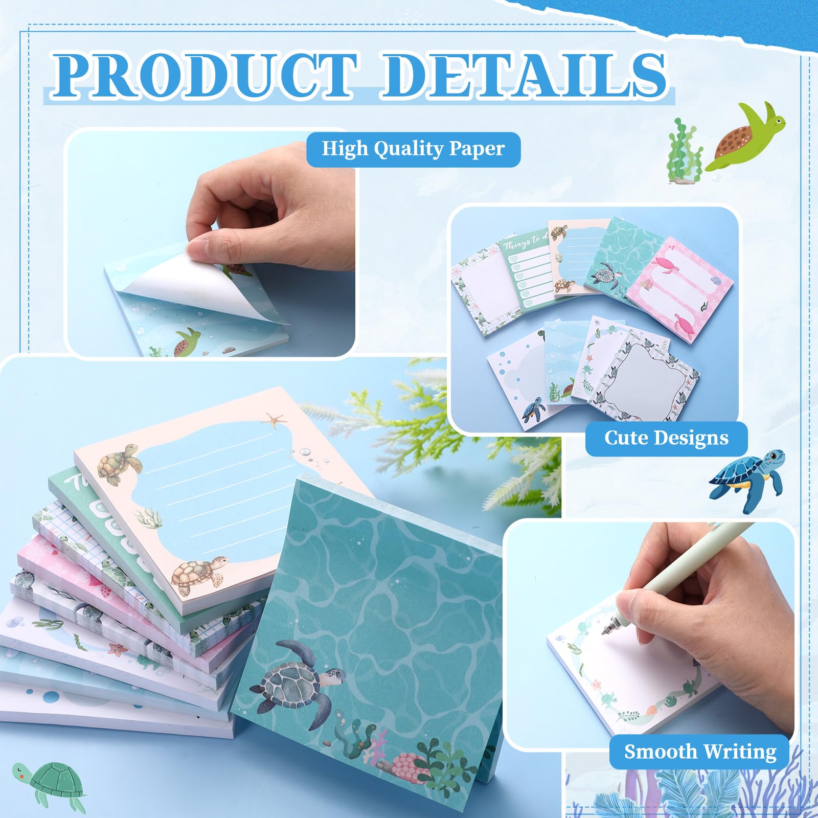 Package Contains: the set of Turtle sticky note pads includes 9 pads, with 50 sheets each, providing a total of 450 useful and attractive notes; Each note measures about 3 x 3 inches/ 7.6 x 7.6 cm, poised to assist in organizing and efficiency tasks