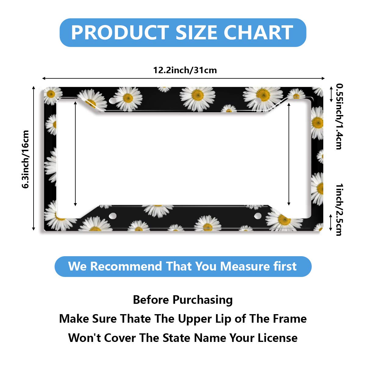 Us & Canada Standard Sizes: The license plate frame measures 12.2 x 6.3 inches and fits standard US and Canadian license plate frames. Make your car more stylish, stand out and stand out from the crowd.