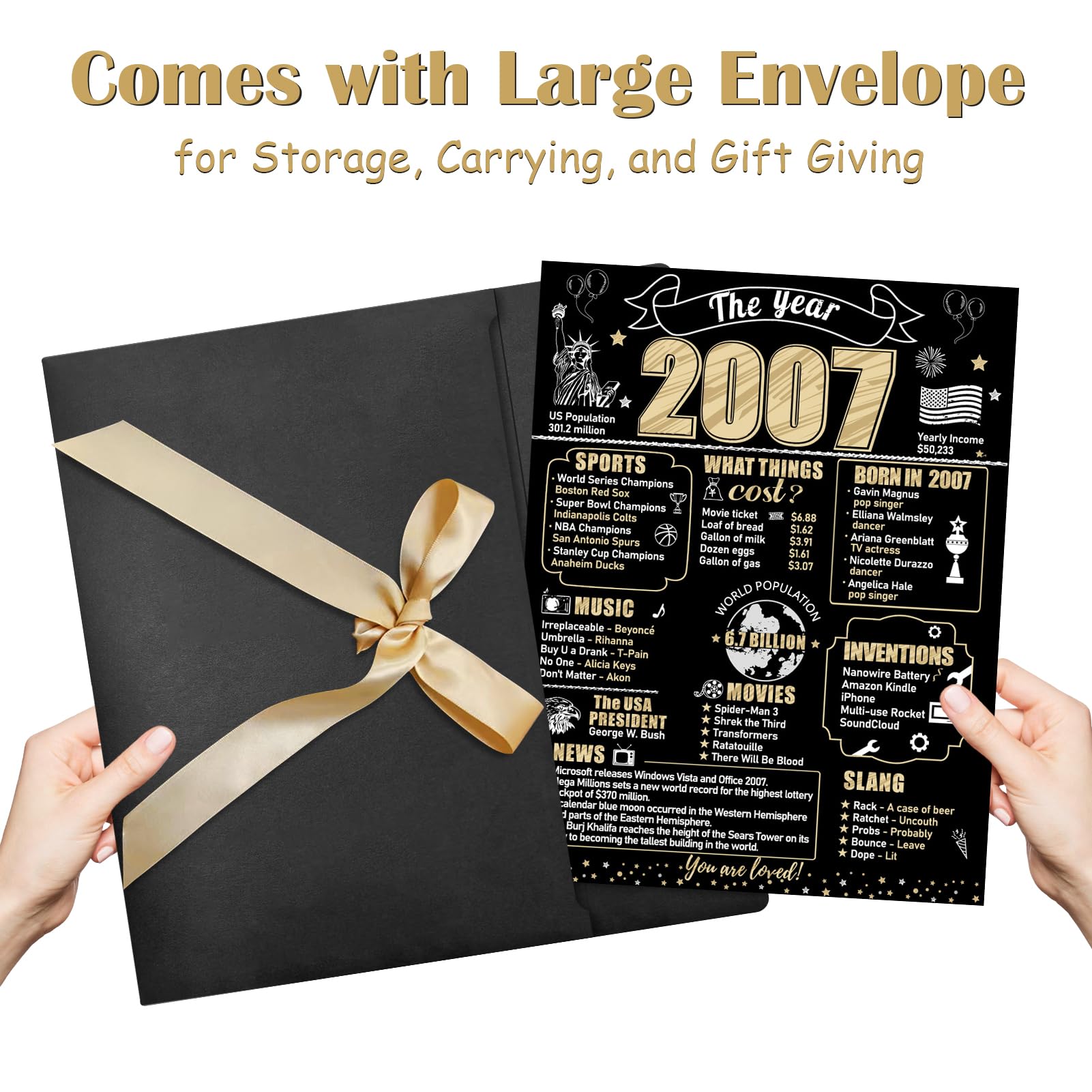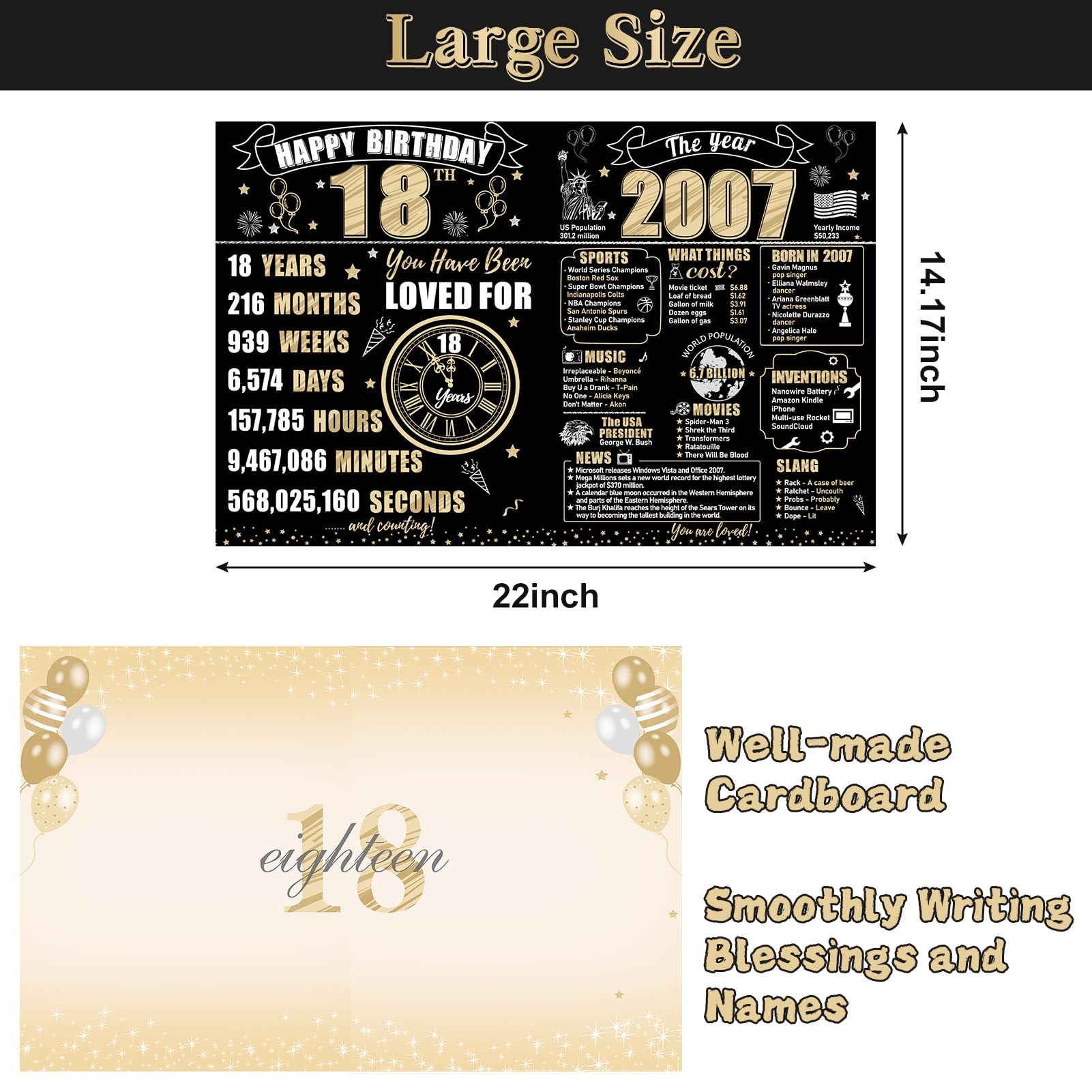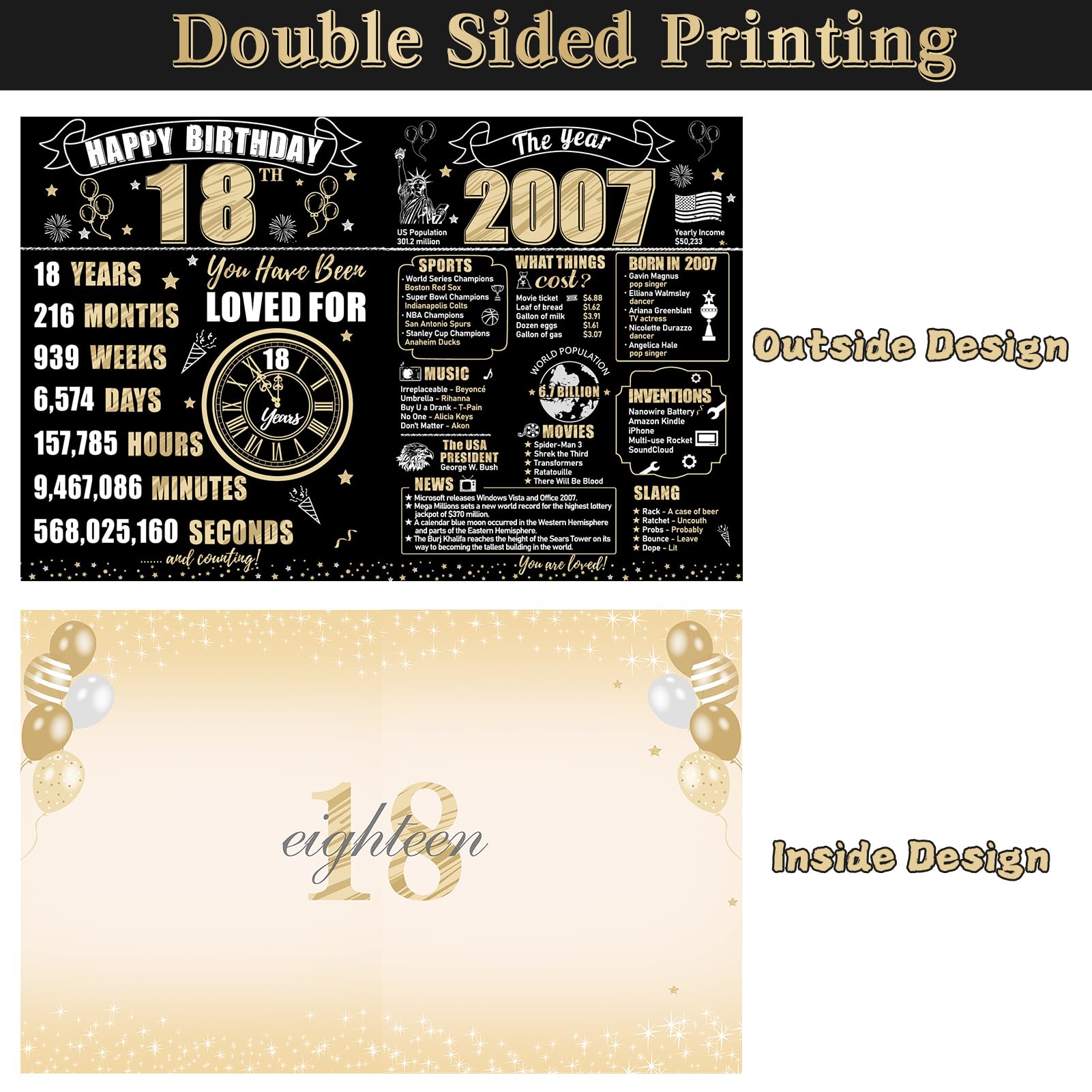 【Vintage 2007 18th birthday themed design】The double-sided design incorporates black and gold tones, featuring birthday elements like balloons and fireworks, commemorating significant events from 2007. It is both interesting and meaningful