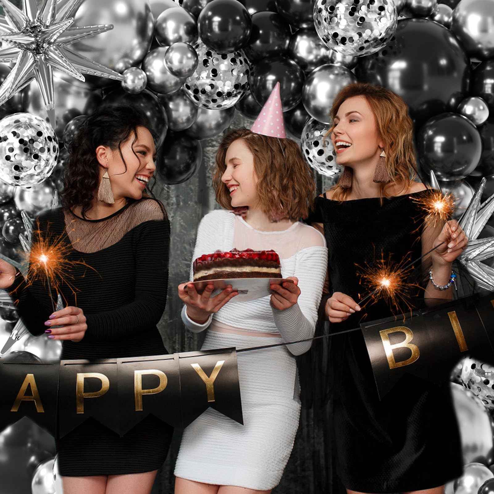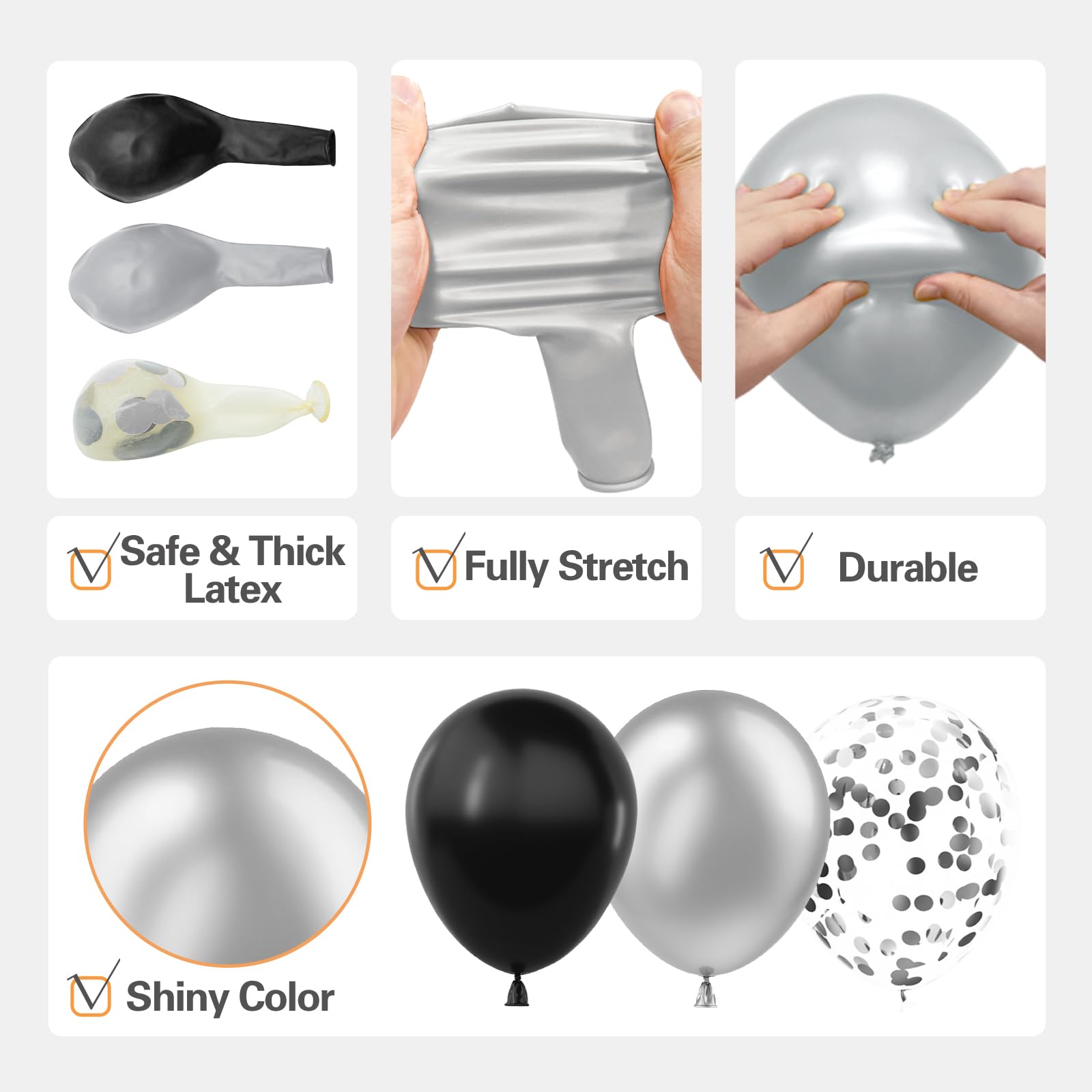 PERFECT PARTY DECORATIONS: Black silver confetti latex balloons garland arch kit suitable for graduation decorations class of 2024, birthday, retirement, silver black themed party, anniversaries, prom, Father's Day, Christmas, bachelor party, company events, photo shoots and any themed party inside or outside, which makes your party more special.