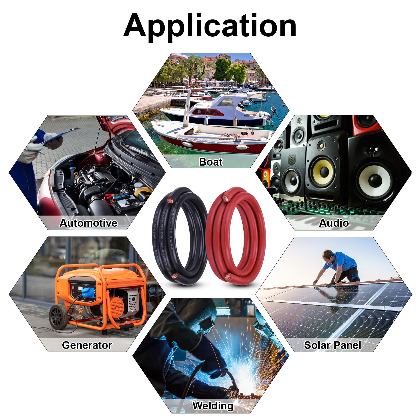 Heavy Duty Wire: This welding cable consists of 2147 strands of 0.2mm oxygen-free copper wire, rated up to 600 volts, withstands temperatures from -122°F to +221°F (-50°C to +105°C), resistant to most solvents, is fireproof (polyolefin material), and can be used in the harshest conditions.