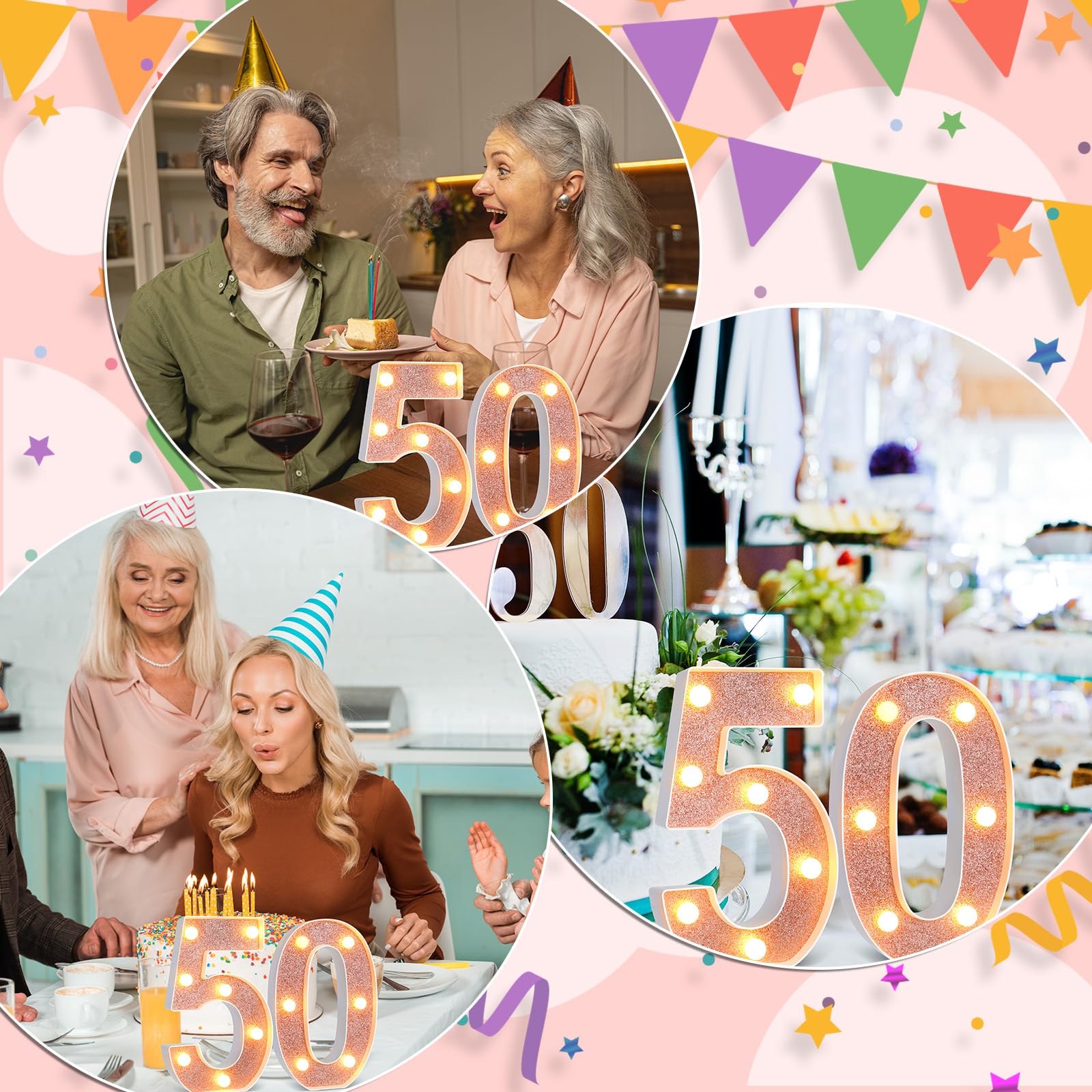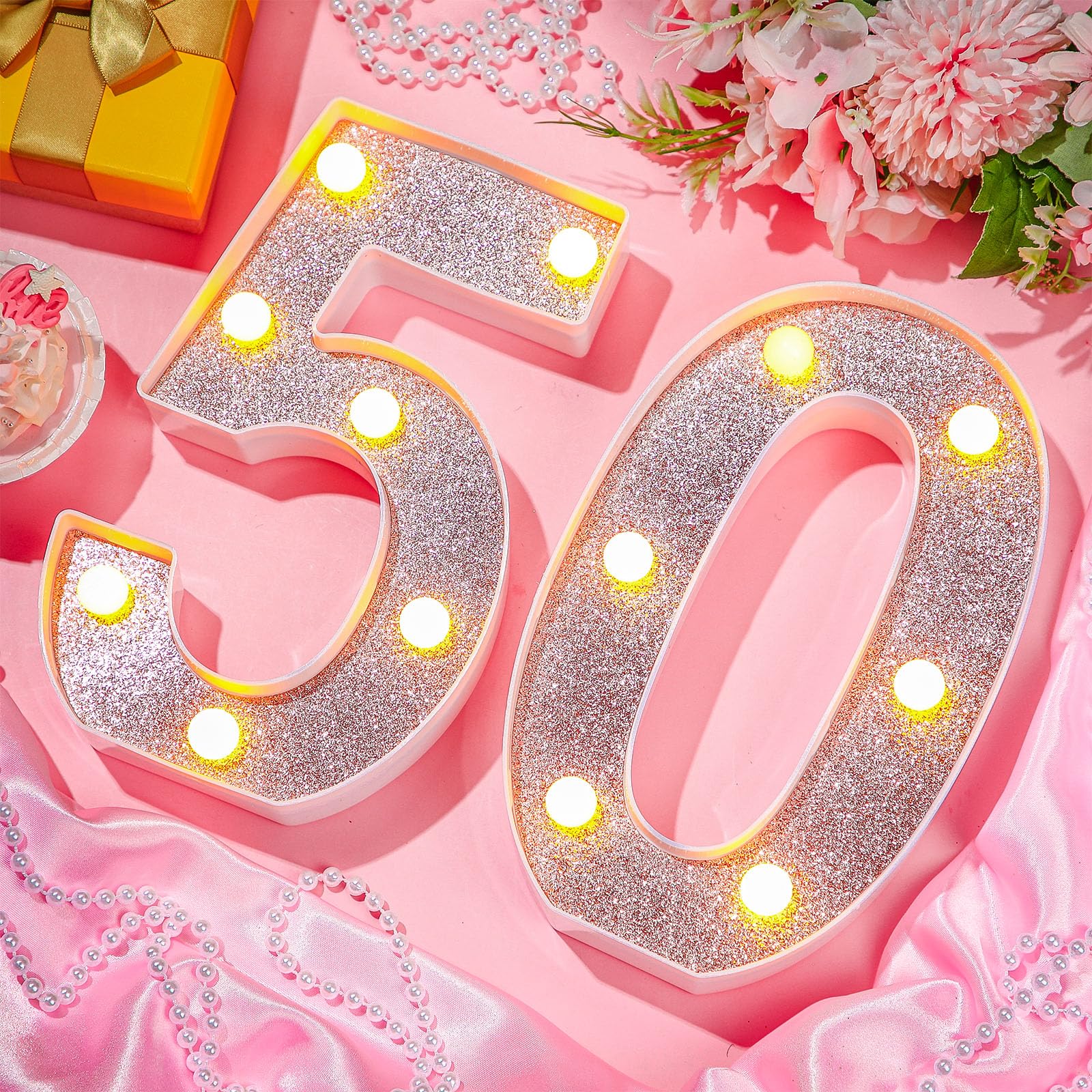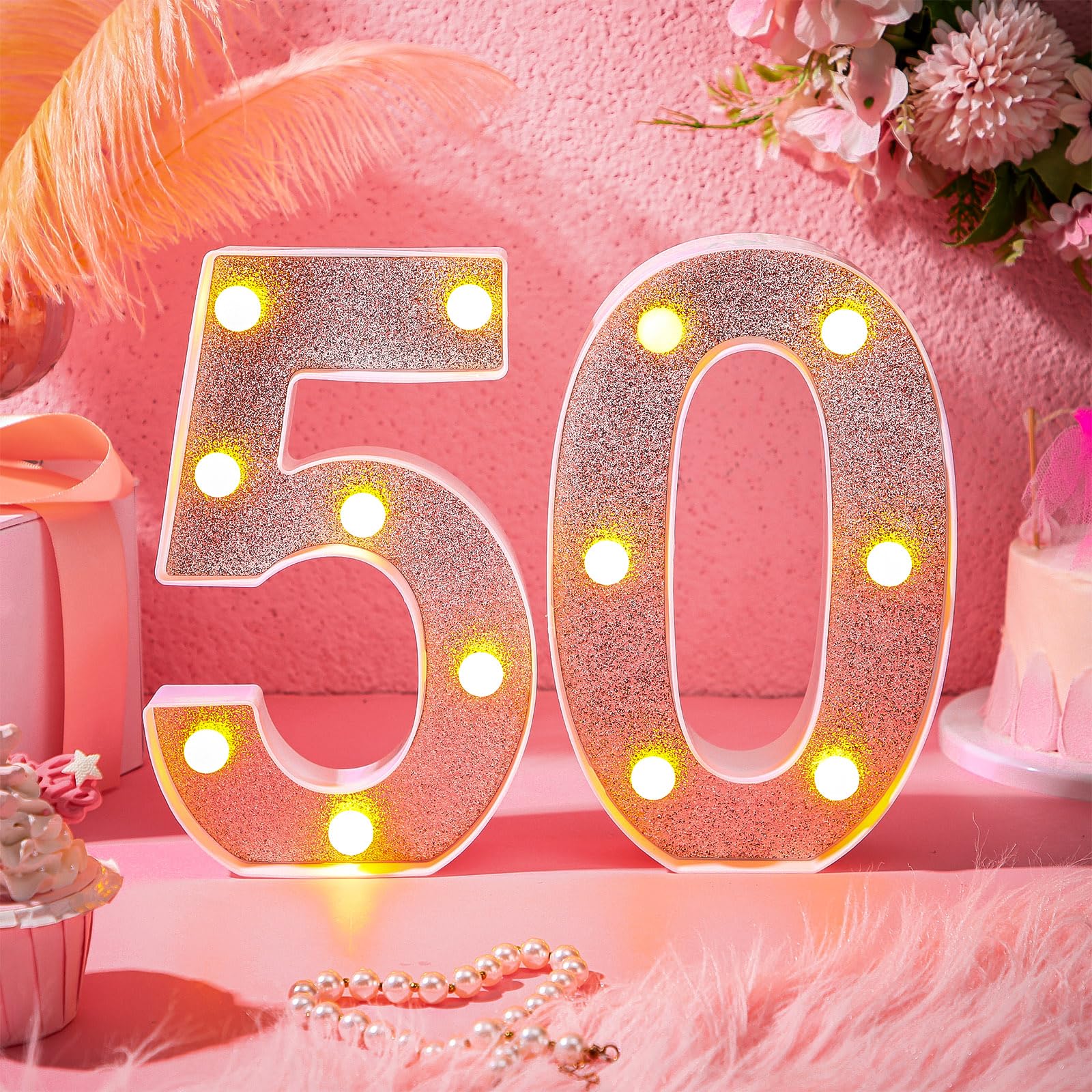 Birthday Party Supplies: you will receive 2 pieces of light up numbers, namely number [5] and number [0]. Specific style and classic rose gold color can easily meet your party decoration needs, putting them on your table will definitely make your party eye catching and more attractive