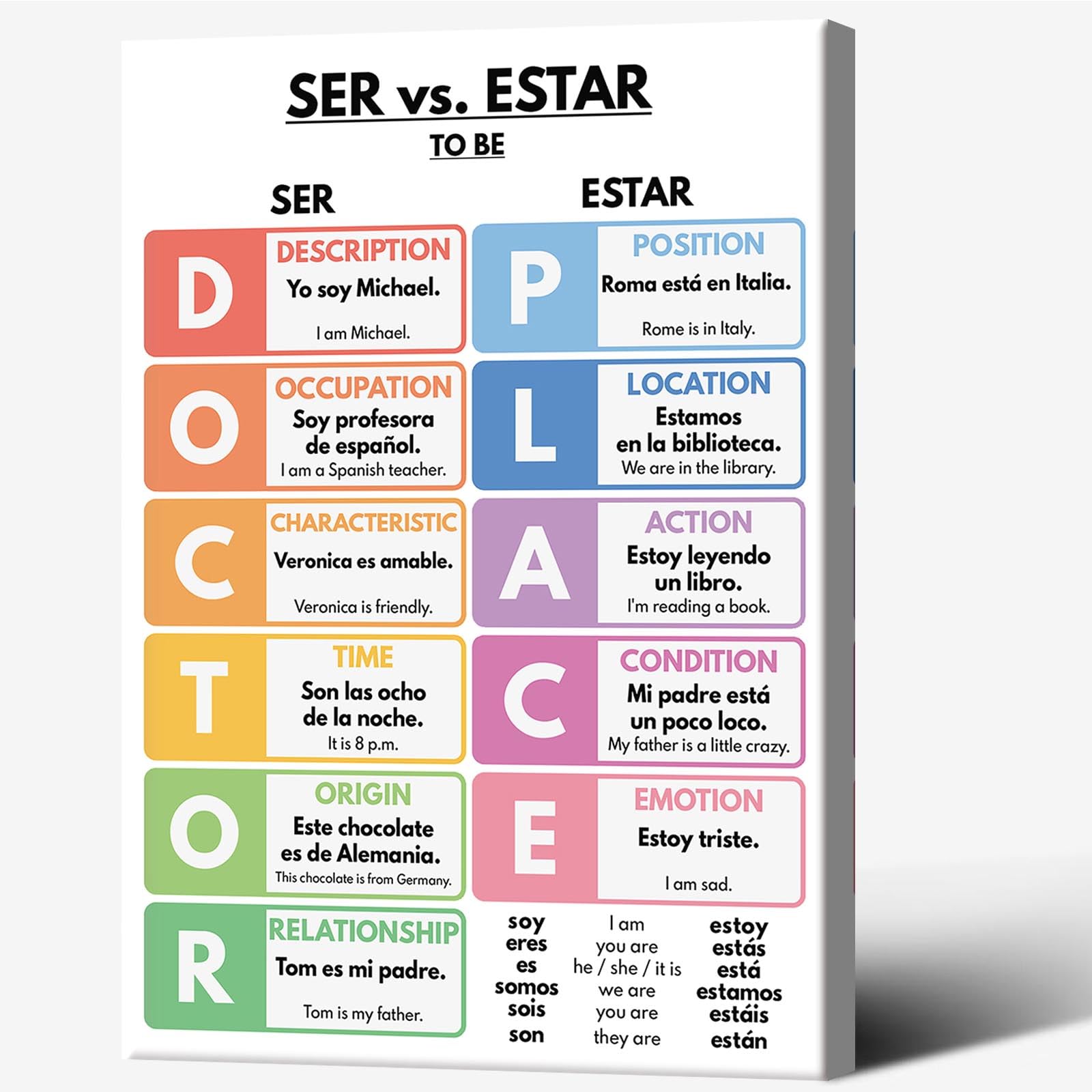 Perfect for Teaching: The clear and concise language charts are designed to help students and teachers alike in understanding the nuances of "Ser" and "Estar" in Spanish.